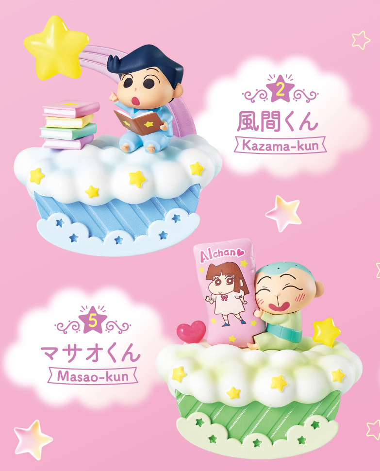 這次登場的雖然都是再熟悉不過的春日部防衛隊隊員跟小葵,但是穿上睡衣的造型、沈沈睡去之後毫無防備的可愛模樣依舊讓人默默想拿出魔法小卡下訂!除了在每一款玩具中注入與該角色相關的元素、與睡夢息息相關的星星月亮裝飾之外,整體更傳達出一股飄飄然的夢境氛圍,睡前依舊是努力學習的風間、照顧著小葵的小白、戴上兔耳髮箍的妮妮、從抓蟲變成抓星星的阿呆、頭朝地好像陷進雲朵中的露屁屁怪獸都好棒,而像是癡漢一般、抱著特製小愛抱枕的正男更是一大亮點。