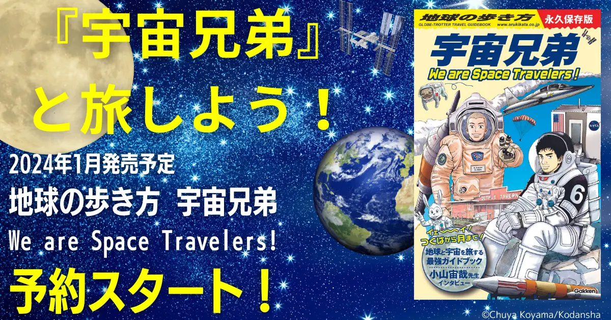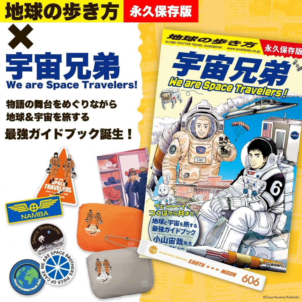 由小山宙哉創作的漫畫作品《宇宙兄弟》,,對於多數粉絲來說已經是極其經典的作品。與知名旅遊雜誌《地球の歩き方》合作,推出專屬於宇宙世界的旅遊指南『地球の歩き方 宇宙兄弟 We are Space Travelers!』 ,帶給大家不同的旅遊指引。目前已開放預購,售價為 2,420 日圓。