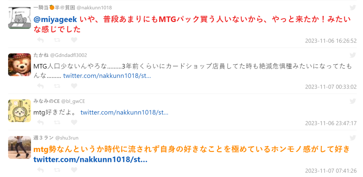 原文推主表示,想買個 MTG 卡牌店員卻都下意識覺得是來買寶可夢的,而且一臉疲憊感覺有點無力。一聽到推主是買 MTG 的,瞬間像是看到沙漠中的綠洲一樣精神了起來,讓推主感覺有點悲傷,原來現在卡牌店家是這樣子的感受。