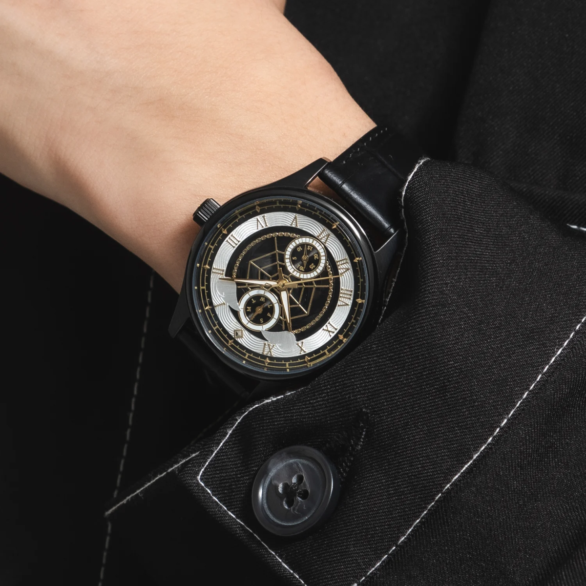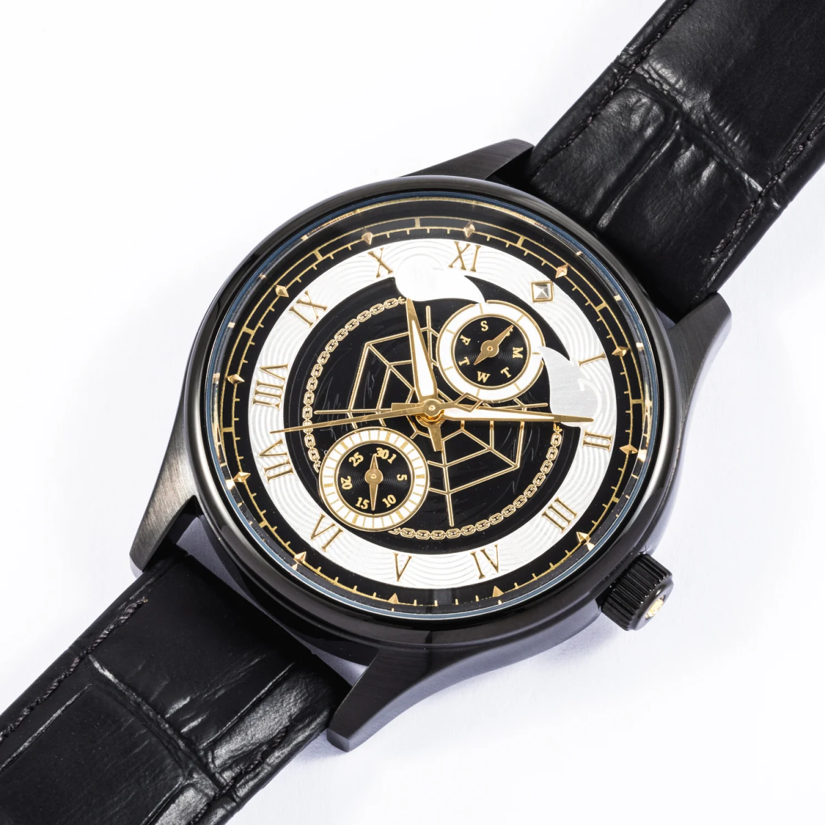 以雅兒貝德的人物設計為靈感出發,將黑、白與金三色呈現,呈現出雅兒貝德的高貴氣息,錶盤也配有其服裝上的金色蜘蛛網造型圖案。