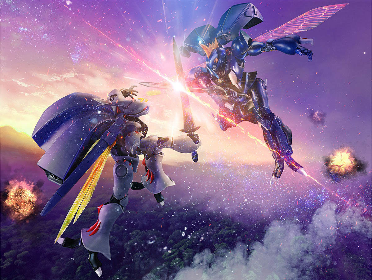 「HG 1/72 維拉比」基於動畫設定稿與動畫中形象製作,運用完全新規零件徹底再現充滿昆蟲特徵的關節、翅膀等部位,擁有藍、黑、黃、透明橘、軍綠、灰藍等多色成形零件,光是組裝就能大幅還原劇中造型,並具備靈活的可動關節設計。武裝部分更包含了靈光劍、靈光發射器、鉤爪...等豐富武裝,能把玩出各種戰鬥姿態。