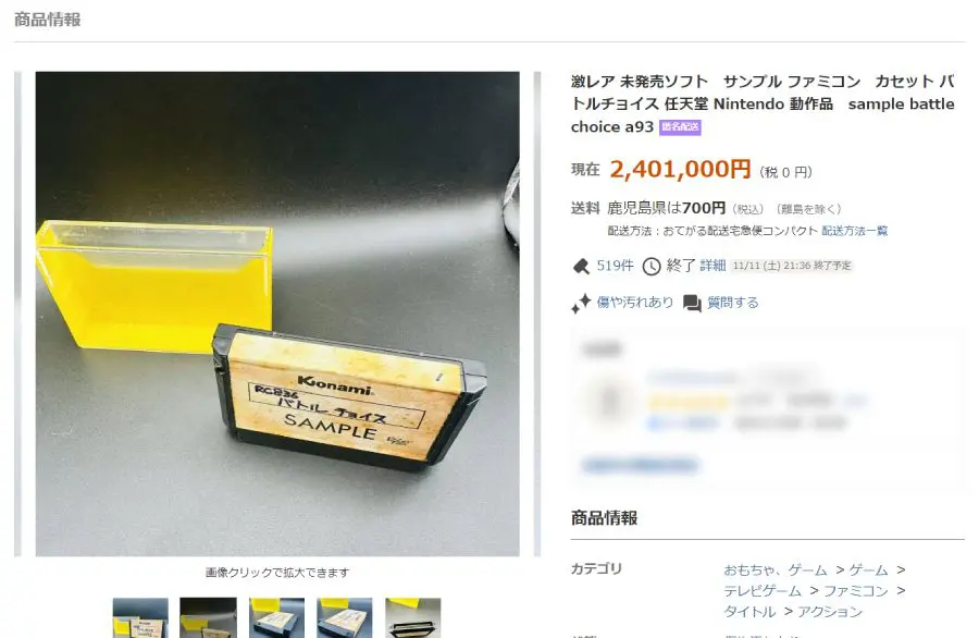 競標時間從 11 月 4 日至 11 日間,經過 519 次競標,商品以 2,401,000 日圓成交。這樣的金額也讓不少人驚艷不已,不過真有心想收購這樣稀有老物的人,財力絕對是可觀的。