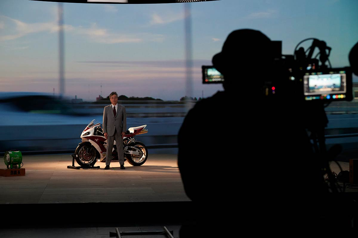 東映官方今日釋出了一段利用「虛擬製片」技術的影片,畫面中能看到一名機車騎士騎上假面騎士1號的「旋風號」在高速公路上奔馳,奔馳到一半才發現,高速公路僅是LED螢幕牆所放出的畫面,而旋風號根本沒動過,至於騎士則是東映的代表取締役社長吉村文雄。