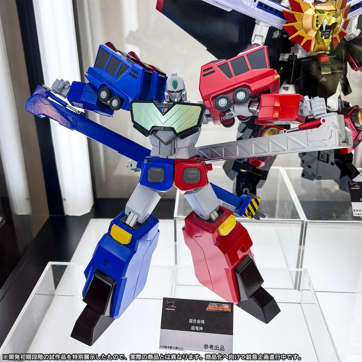 雖然「超合金魂 超龍神」目前尚未公開商品情報,不過近年就曾展出數次開發中試作品,商品中將包含可分別獨立把玩的「冰龍」、「炎龍」兩架機體,擁有機器人形態使用的步槍等武裝與車輛形態變形機構,更能再現劇中「對稱組合」方式變形合體為「超龍神」。