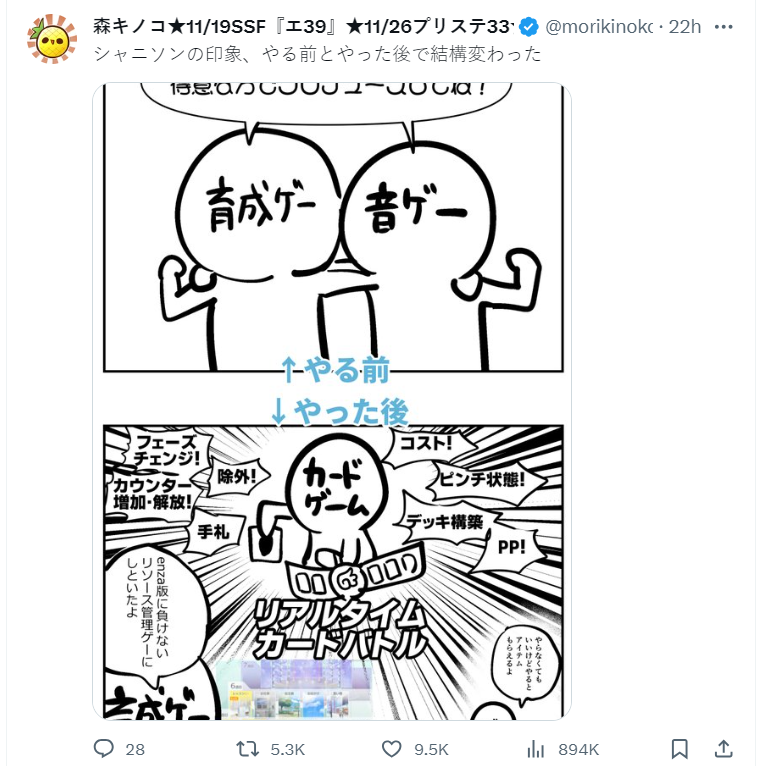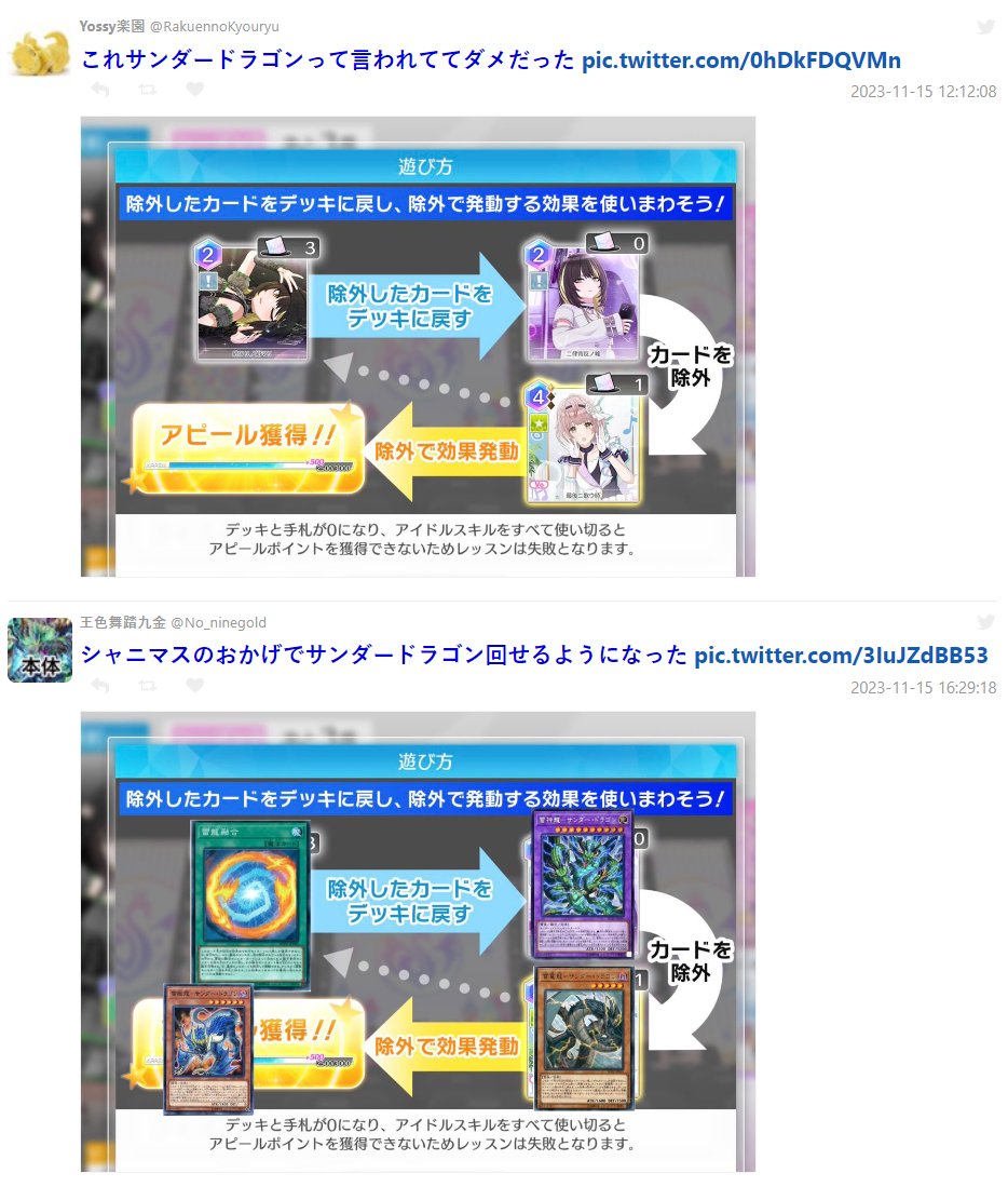 不過上線後的日本 X 上,對此遊戲的評價卻出現了奇妙的話題,以卡牌形式遊玩的緣故,網路上出現對此有《遊戲王》感覺的評語,也讓「シャニマス 遊戯王」 成為趨勢之一。