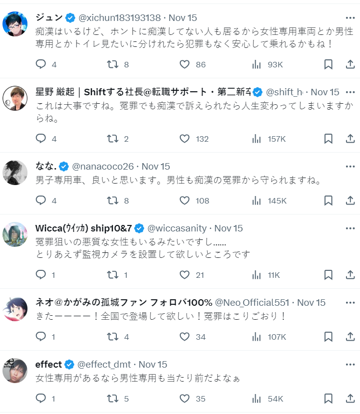 雖說這樣措施僅是 NPO 組織的活動,並沒有要擴及日本所有電車的設立,但的確也讓人思考「男性專用車廂」是否有其必要性,又或者真的能減少所謂的騷擾犯罪嗎 ? 也許這是未來日本社會思考的項目。