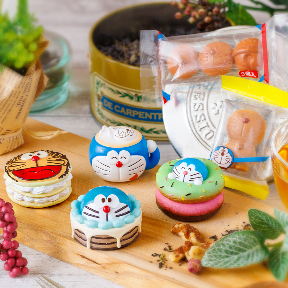 哆啦A夢未來百貨公司限定的「讓人肚子餓的磁鐵~Sweet things~」,」是以哆啦A夢為主題設計的甜點造型磁鐵,收錄有:哆啦A夢形狀的奶油鬆餅、人型燒、蛋糕、甜甜圈和咖啡等,逼真的塗裝強調了甜點的美味可口,擬真的包裝也超可愛!在內部有小型磁鐵,除了可以吸在冰箱、辦公櫃等地方,也可以當作一般小擺飾,只不過要注意,光是看著就想流口水啦~