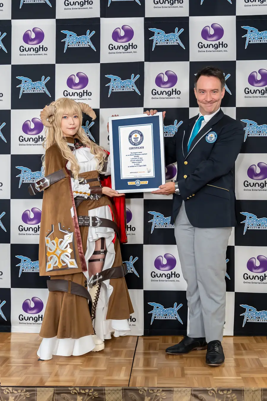 不過在今日 ( 11/21 ) 現年 42 歲的 Coser よきゅーん,因擔任遊戲《仙境傳說》官方 Coser 長達 20 年的時間,獲得金氏世界紀錄「最久的遊戲官方Coser」認定。從 2003 年至今都擔綱這個職務,連よきゅーん都驚訝居然過了這麼久,意外自己會成為這項紀錄的創造者。