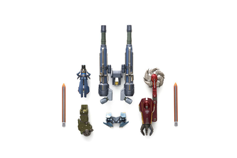 在可動部分,全身關節皆具備靈活可動範圍,手掌各手指獨立可動,搭載於雙臂的武裝「離子砲」與「屠獸劍」則是透過替換零件方式再現展開狀態。此外鐵機巧版本還將另外四架機甲獵人的武器,製作成讓吉普賽危機裝備的原創武裝,包含暴風赤紅的「高速圓鋸手臂」、車諾阿爾法的「扳手式手掌」、戰狼探戈號的「背部雙管加農砲」,而衝鋒發現號的「胸部導彈發射器」則是官方指定通路購買的特典零件。