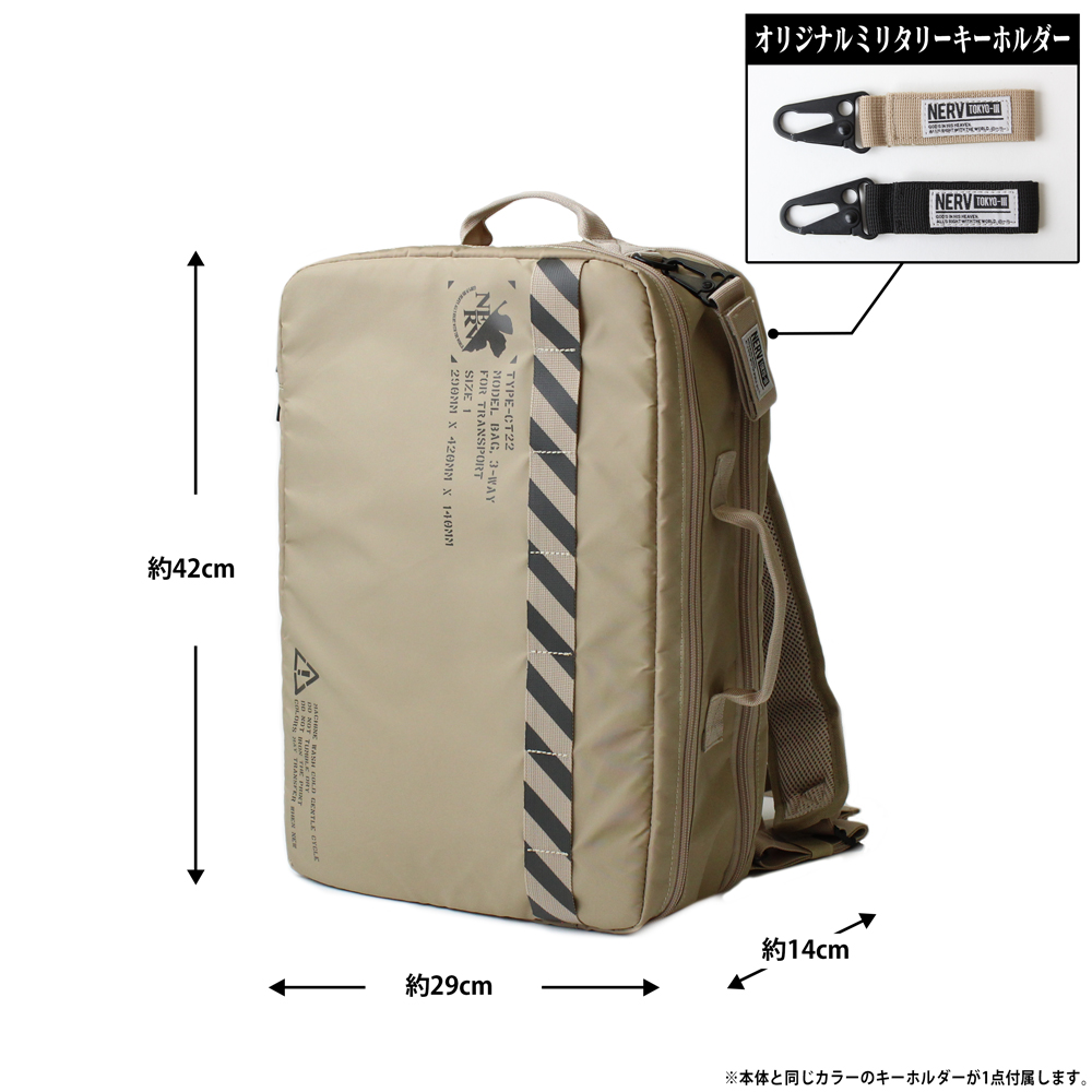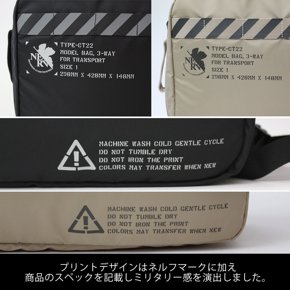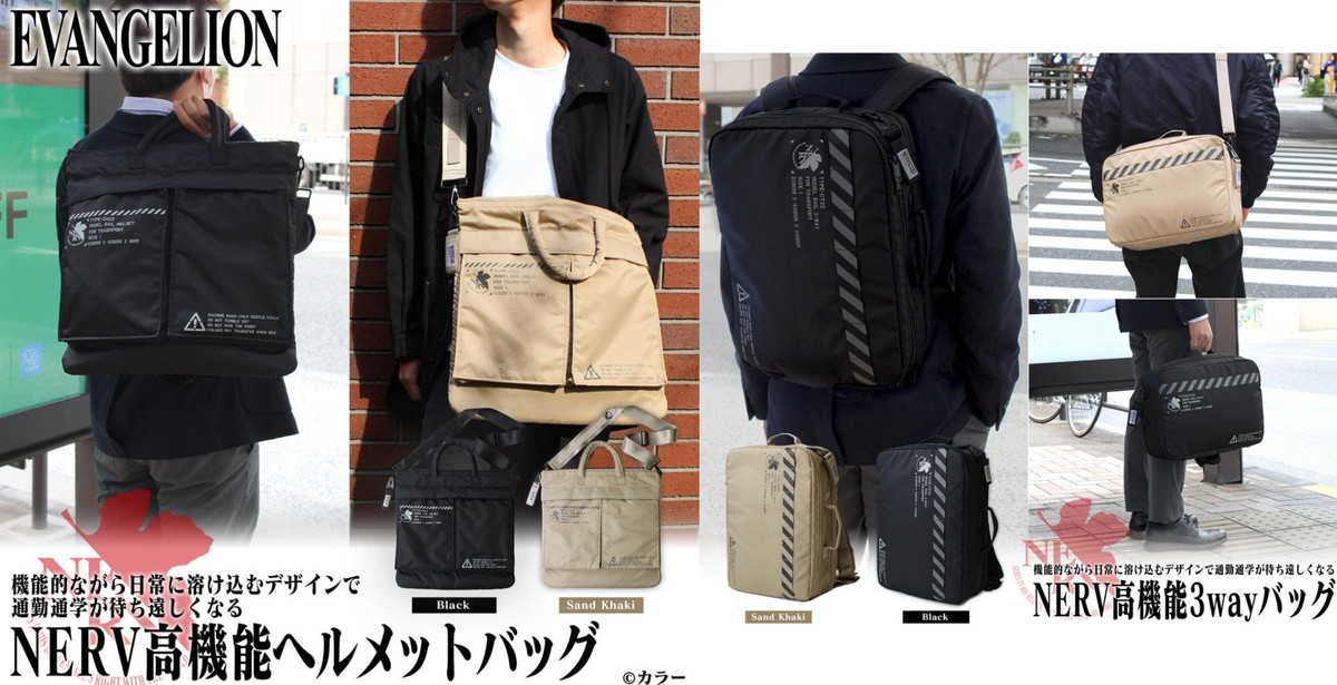 兩用手提包提供手提與側背的機能,而多功能後背包則是可以從後背、側背與手提三種方式來使用。包款設計都加入 NERV 組織的元素,有如組織用品般讓你可以展現對 EVA 的愛。