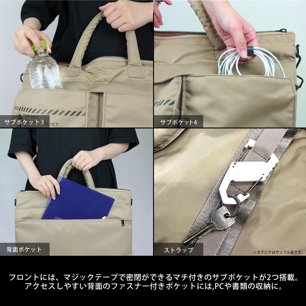以尼龍面料製成,可以手提可側背的設計讓你隨心所欲使用外,內裏容量也提供強大的收納空間,多口袋提供收納機能外,還另有筆電專屬空間。不論是上班上課或是出遊都可以使用,有黑色與卡其色可供選擇。