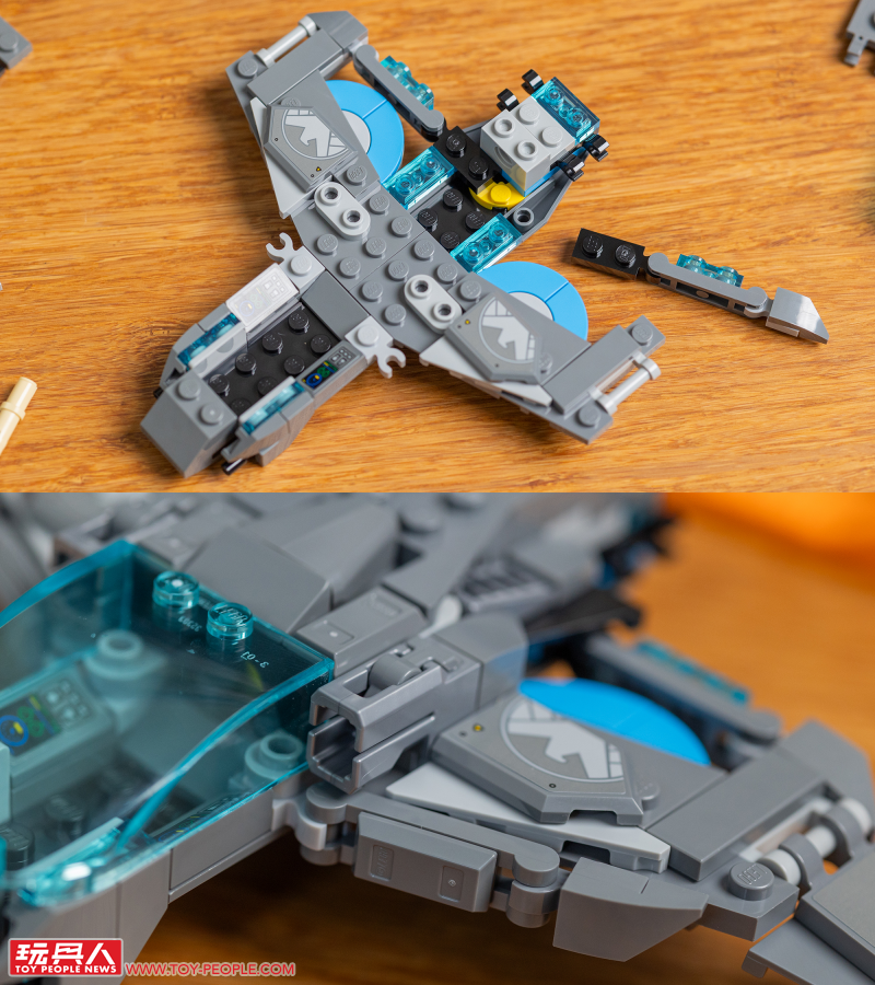 ▼ 這個位置運用了大量科技零件中的插銷,確保不會因為把玩昆式戰機時的施力導致建築傾斜、倒塌。