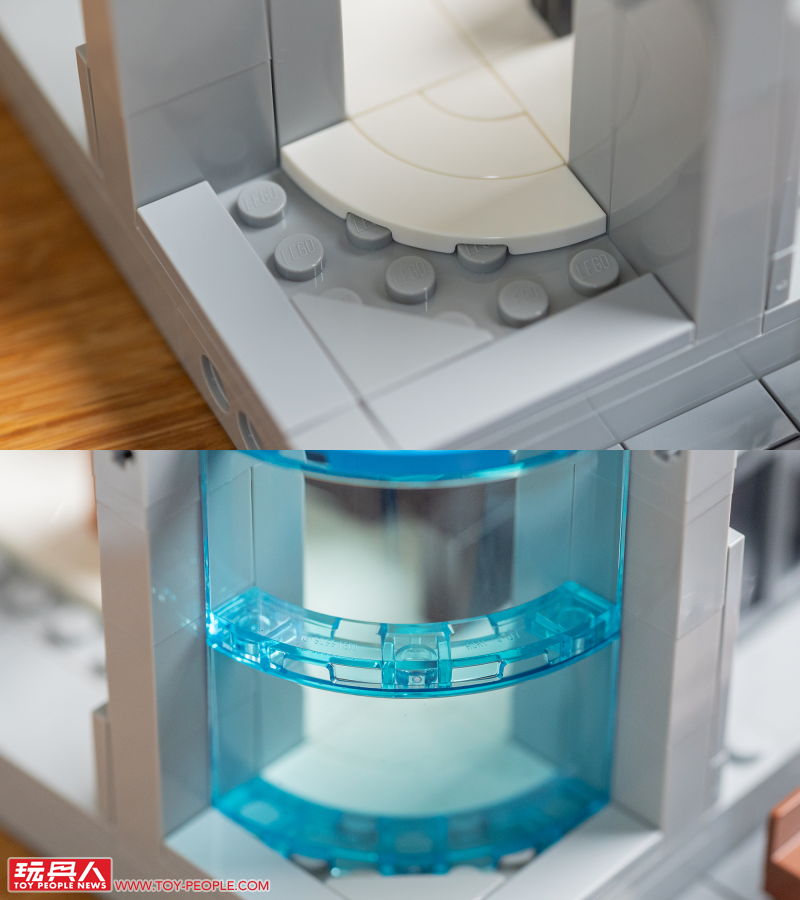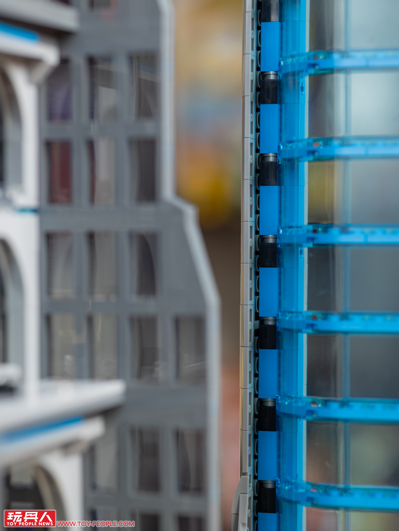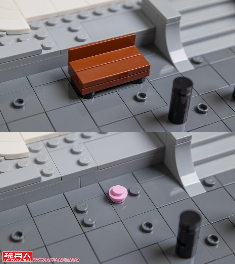▼ 早在官圖發布時小編對於結構穩定性就有一些疑慮,不過這次的組裝體驗還算不錯~有很多必須大力按壓的情況都沒有垮掉;建築物雖然有著大面的窗戶,但設計師依舊在多個位置巧妙地做出錯位拼搭,在 1 格的寬度當中盡可能讓建築物更加堅固。