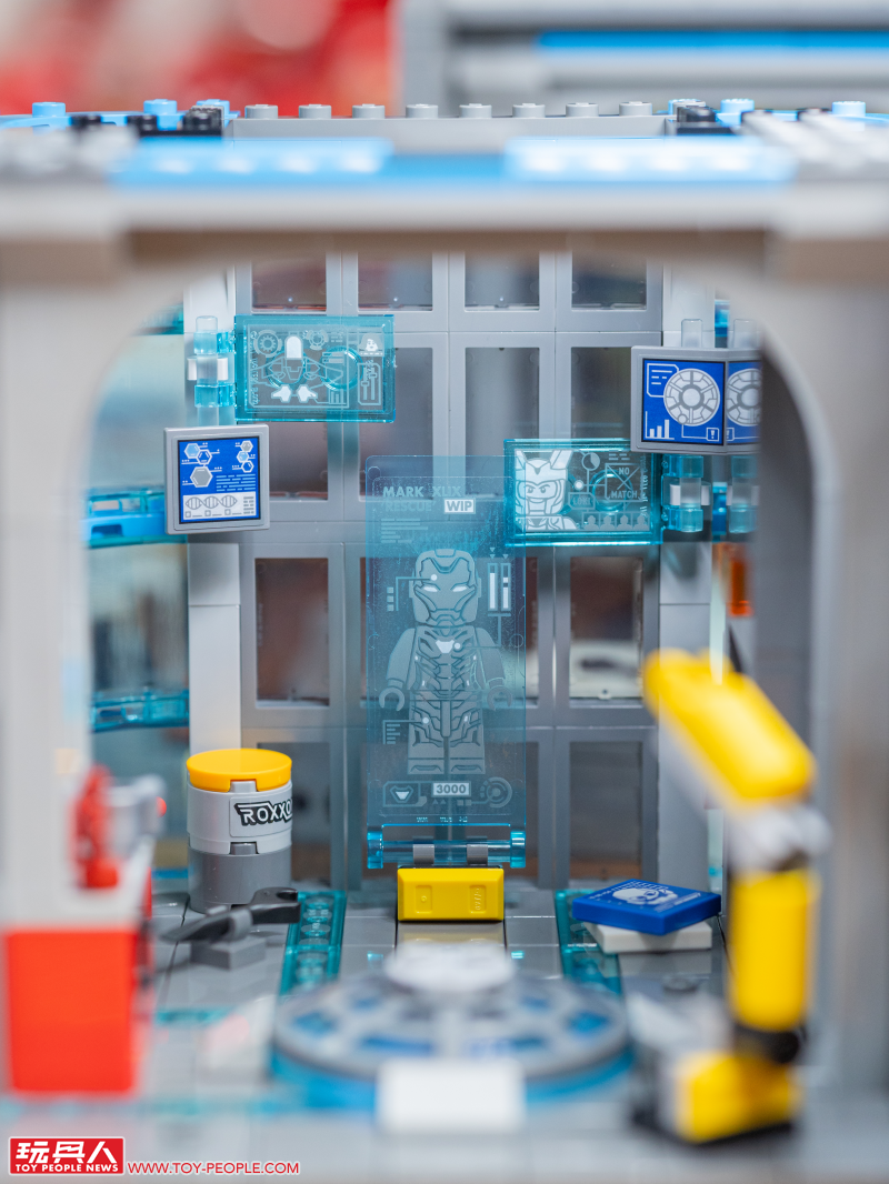▼ 二樓的後方一左一右、一藍一橘的樂高零件,那是來自奧創紀元中「奧創 VS 賈維斯」場面的立體化,竟然想得到用這種方式樂高化,有夠酷。