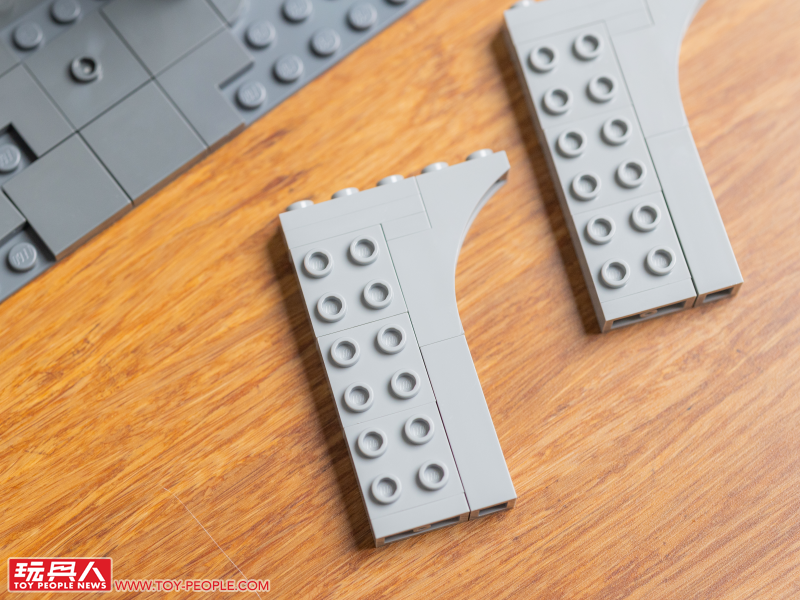 ▼ 為了達成造型還原,樂高採用大量此種拼砌結構,可以在多個部件組完之後,再從垂直的方向裝上長條的平面零件加固。
