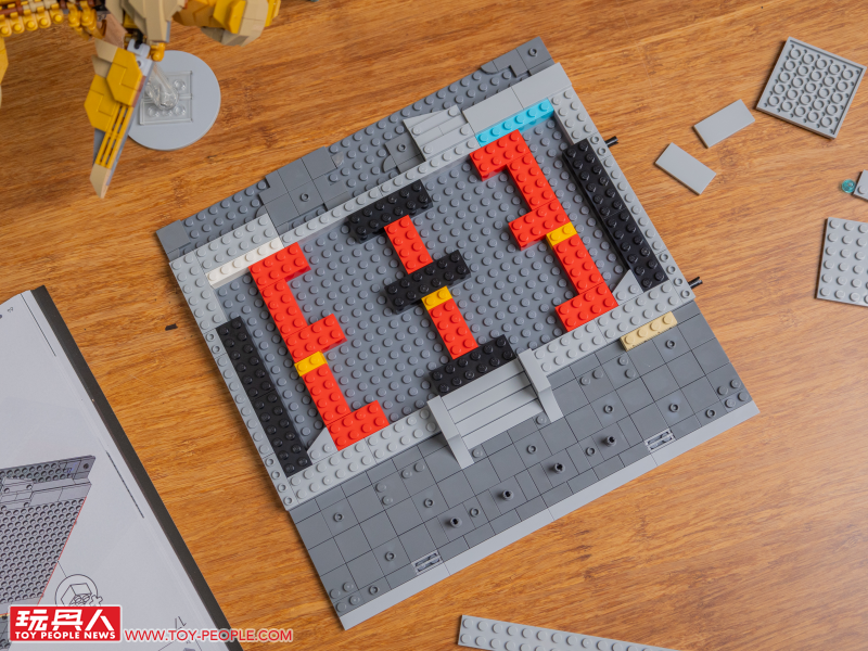 接著我們依照組裝時的順序,來看看這次復仇者大廈在完工之後不易看到的細節吧!首先就是建築物的地基,明明只是單純用了紅色零件,但在說明書裡把這件事包裝成「東尼·史塔克說來點火熱的紅色」,這一小巧思就讓組裝過程多了些樂趣,無形之中彷彿也跟設計團隊有了互動。