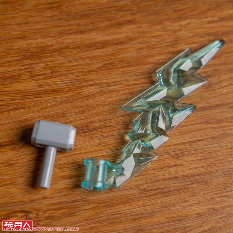 ▼ 這款盒組運用很多特效件讓人偶們更加活靈活現,單單是加上一個透明的 1×2 積木就可以讓人感受到漂浮的視覺效果,閃電特效更是讓雷神之鎚看起來更強悍!