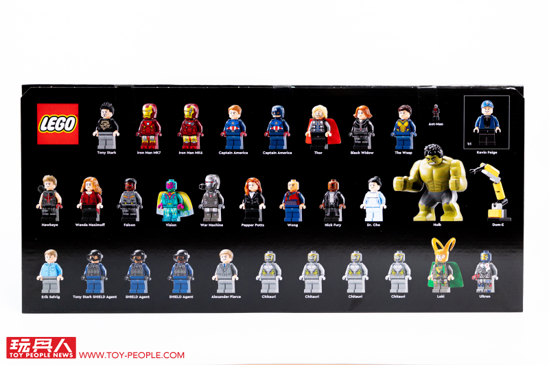 ▼ 頂部是人偶陣容一覽!這款 76269 一共擁有 31 款人偶(包含微型比例的蟻人),如果把磚拼形式的 Dum-E 也算進去就會有 32 款角色;這不僅僅是 MARVEL 主題單盒最齊全的角色陣容,也是樂高史上包含最多人偶的一款盒組。