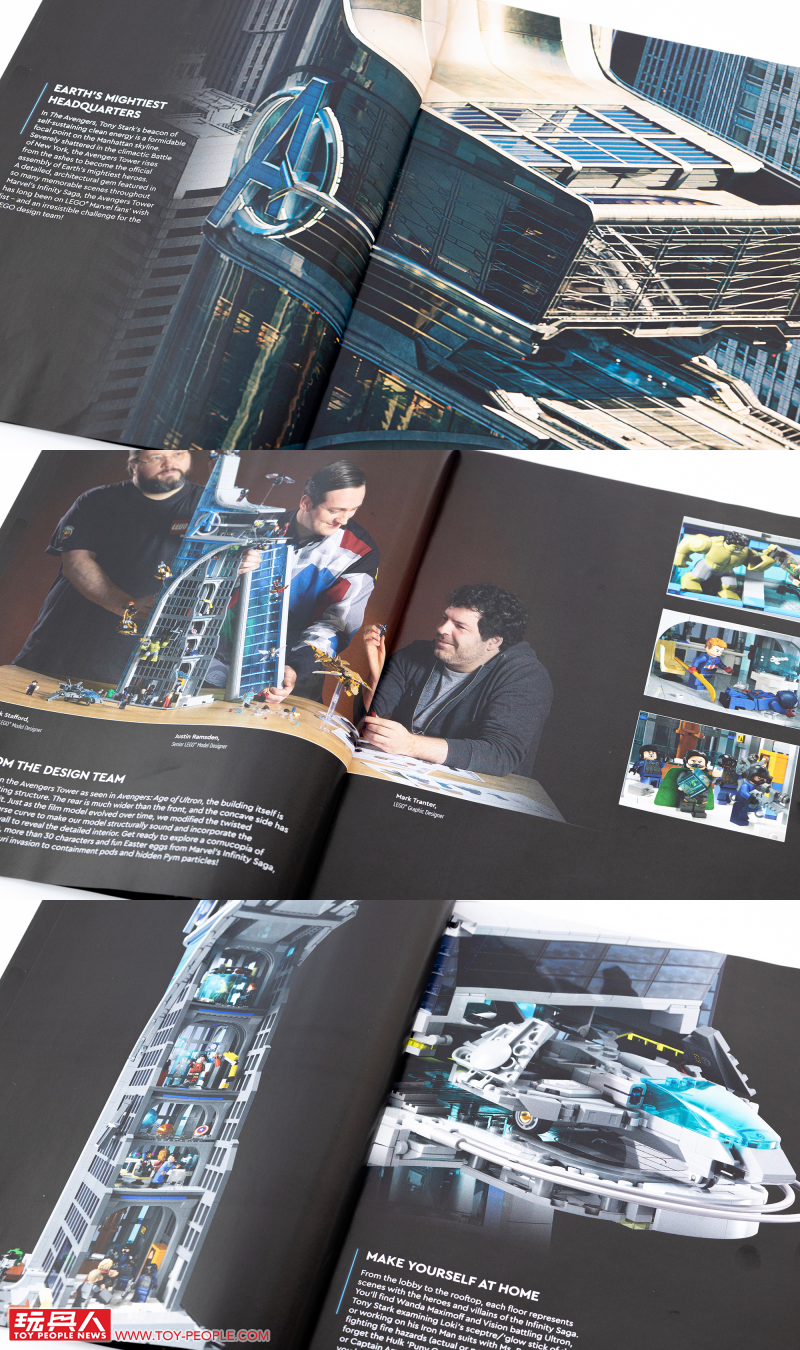 ▼ 第一本說明書大致介紹了復仇者大廈的來歷、各層樓可以把玩出的場面,負責模型的設計師一共有兩位,分別是 Mark Stafford(下圖左)與 Justin Ramsden(下圖中),圖像設計則是由 Mark Tranter(下圖右)負責。