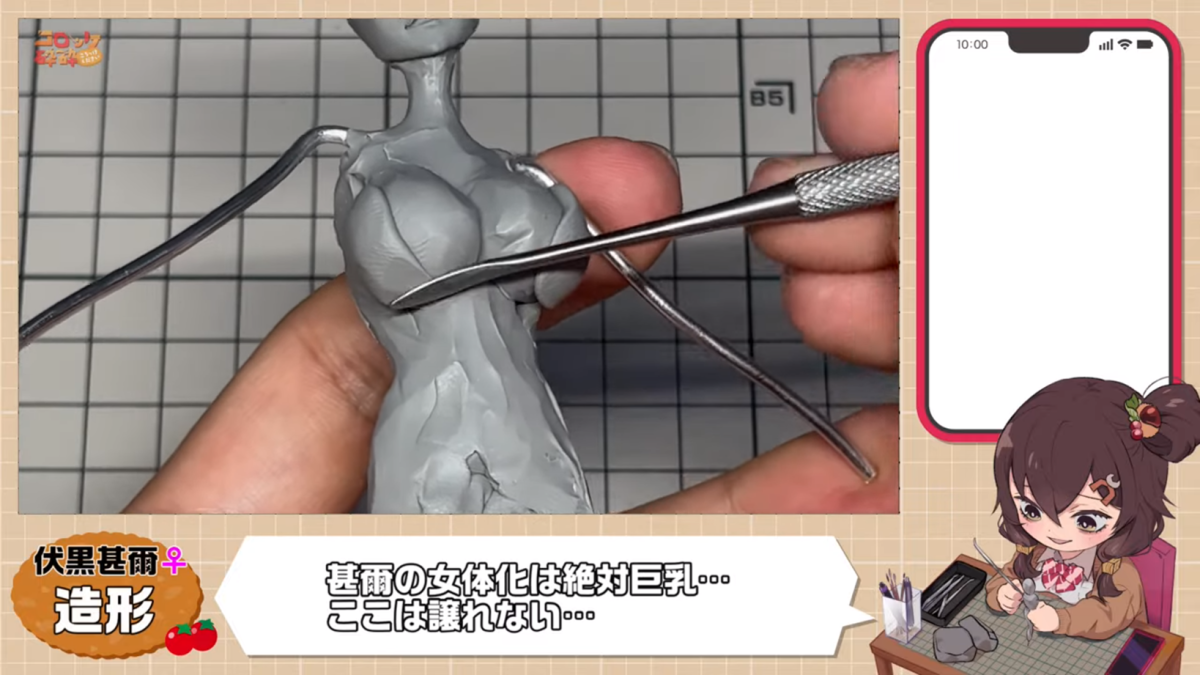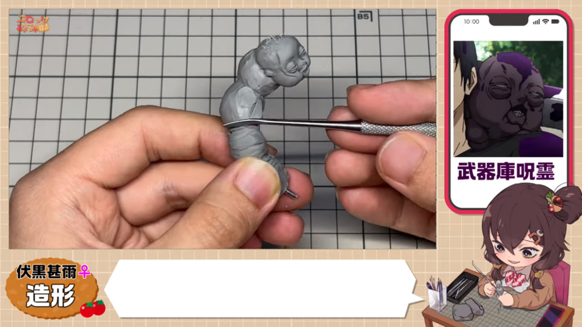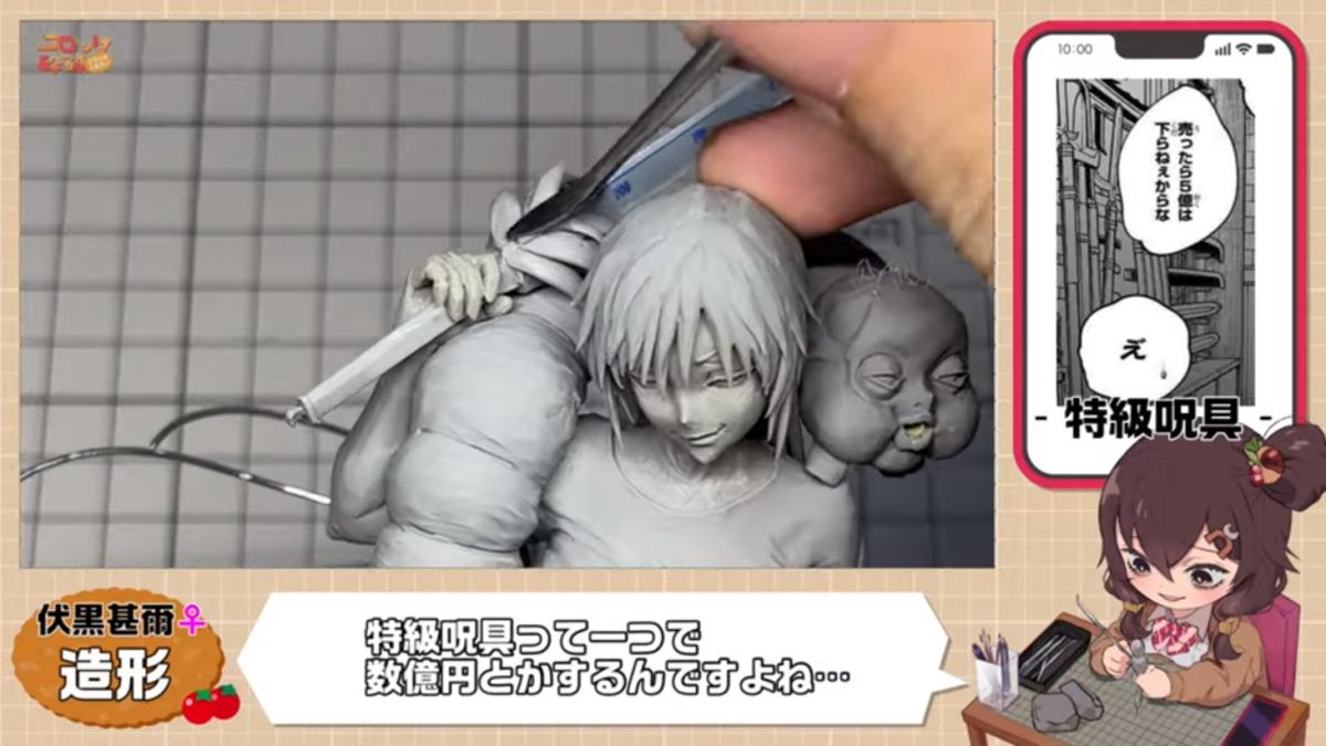 一樣透過黏土與鐵絲來捏出人形,從基礎的身體製作起步,コロッケ砕砕表示,因為甚爾本來就是一個體格壯碩,彪形大漢的樣貌,所以決定一定要把「女體化」的身材強調出來,於是就必定要捏個巨乳了 ( ? )