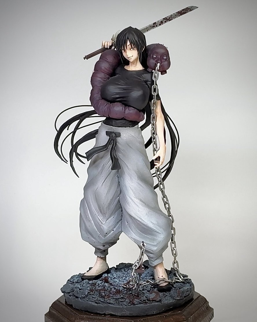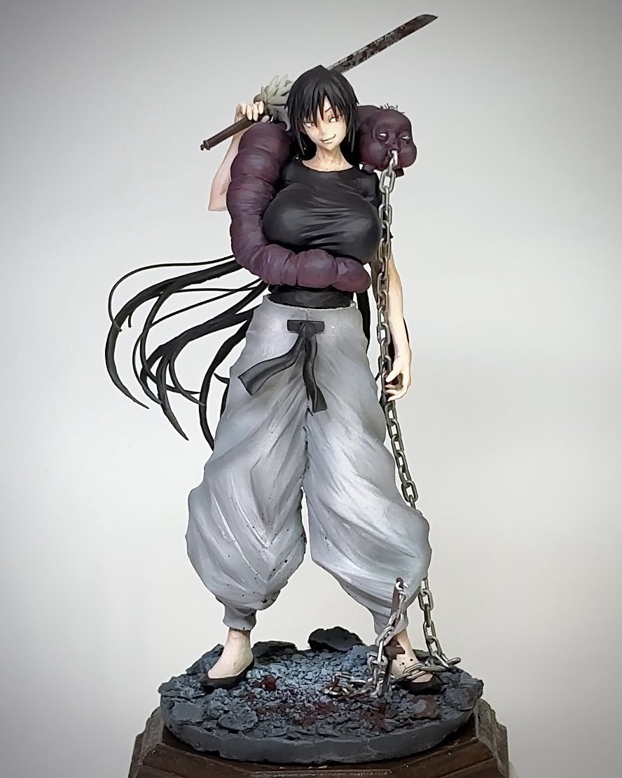 上色後就是成品了,コロッケ砕砕強調的巨乳,兩把武器與收納咒靈都一一完美呈現,雖說看起來包緊緊,但仍能看出伏黑甚爾「女體化」的傲人上圍 XD。