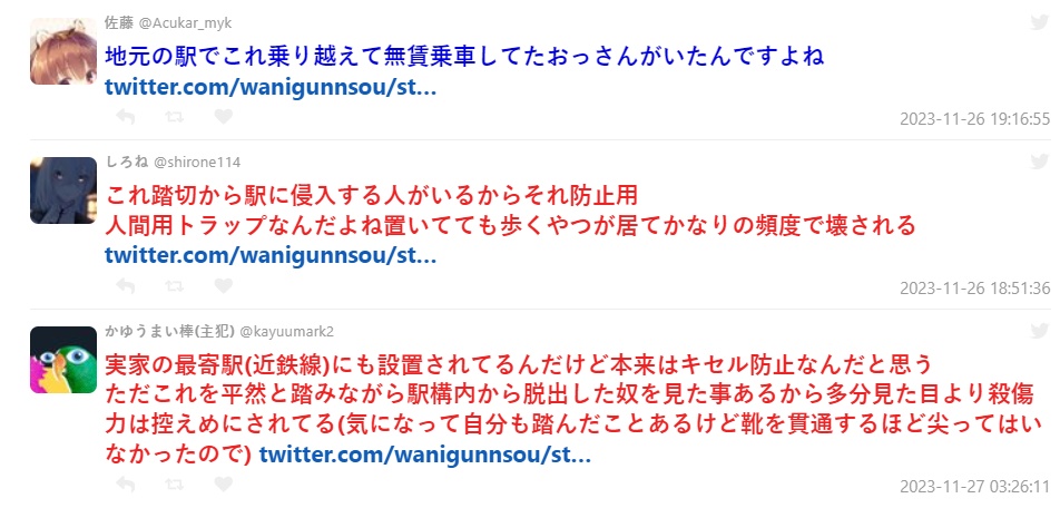 貼出照片的推主表示,過去好像在江之電電車的鐵道上看過這樣的設施,看起來是充滿殺意的防止踐踏措施,好奇是不是只有這裡才有 ?