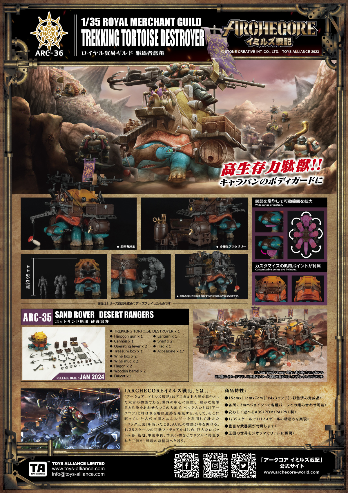 由 TOYS ALLIANCE 旗下的「Archecore イミルズ戦記」系列日前發表了最新作「ARC-36 皇家商會 驅敵旅龜」塗裝完成品!預計於 2024 年 1月發貨。