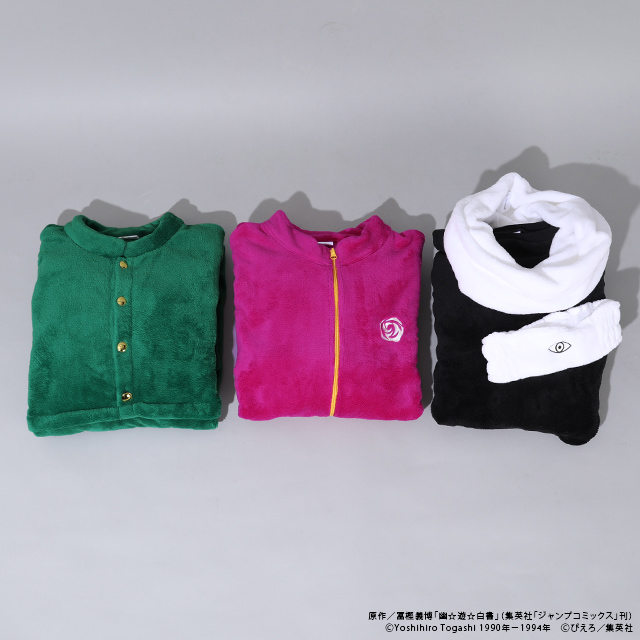 以幽助、藏馬與飛影三人為主題設計,以長版的家居服飾給各位舒適的居家穿著體驗,絨毛布料非常適合秋冬穿著,飛影款更附有頭巾與圍脖作為搭配。