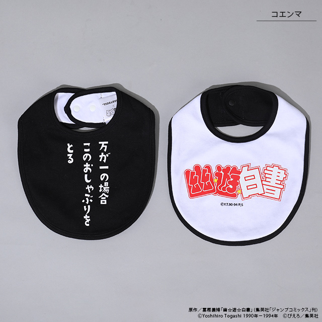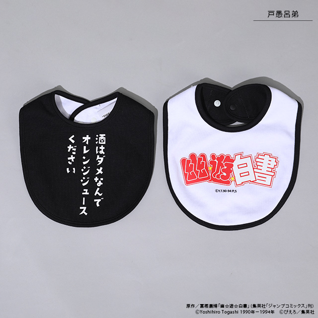 以幽助、飛影、藏馬、小閻王與戶愚呂弟五位的名台詞製作而成,翻過來則是幽遊白書的 Logo,搭配小閻王嬰兒服更是絕配。