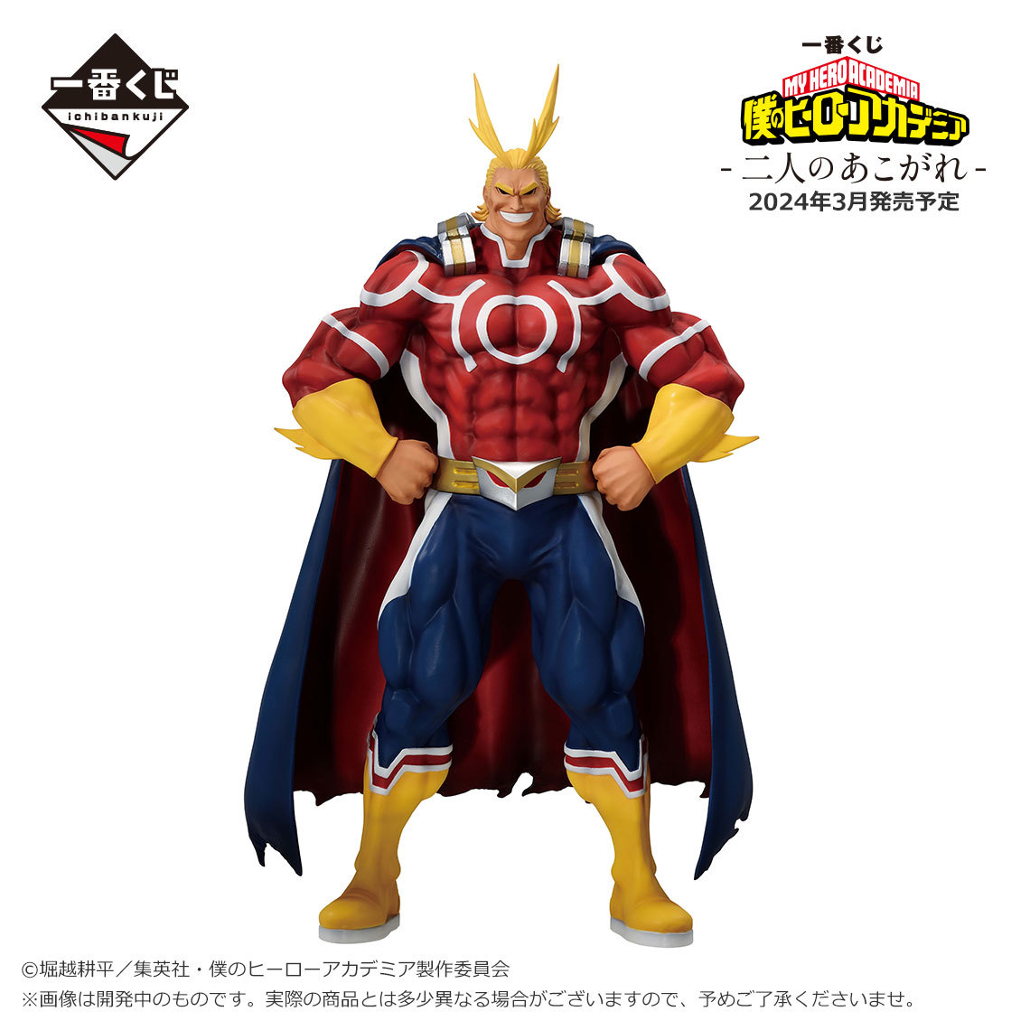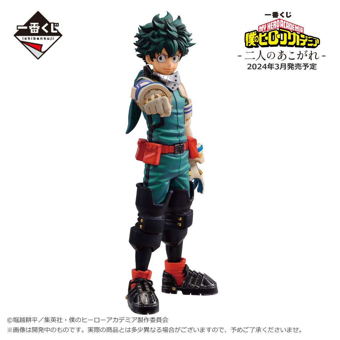 「一番賞 我的英雄學院 -兩人的嚮往-(暫譯)」,將推出 A~H 與最後一賞、雙重機會賞等不同級別的賞品,以綠谷和爆豪兩人為核心,收錄有兩人從小憧憬的目標:A賞 歐爾麥特,以及 B 賞 綠谷出久、C賞 綠谷出久(幼少期)、D賞 爆豪勝己、E賞 爆豪勝己(幼少期)角色模型,最後賞則為 歐爾麥特 最後賞ver.~另外還有未公開的附蓋水杯、透明文件夾套組、小毛巾等經典的一番賞獎品,將於後續發表~