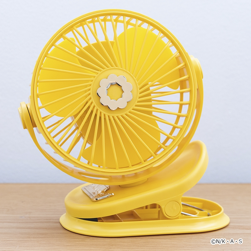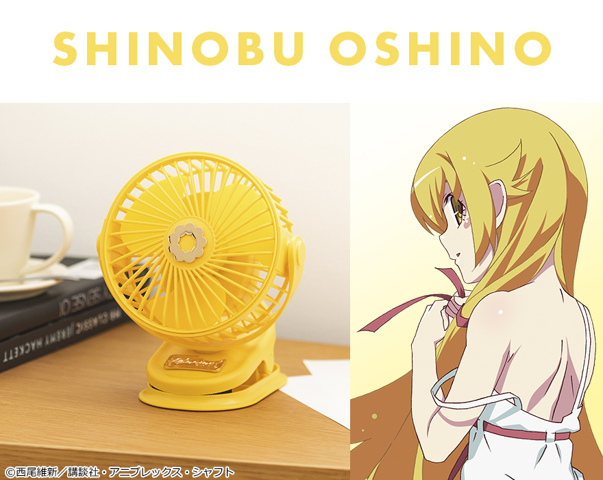 以迷你的夾式電風扇設計而成,採用原作忍野忍愛吹的電扇樣式,以 USB 充電即可使用。雖說看起來僅是全黃造型有點簡陋,但夾子處富有忍野忍名台詞「ぱないの!」 ( PANAINO ) 的金色裝飾,算是簡單點綴。