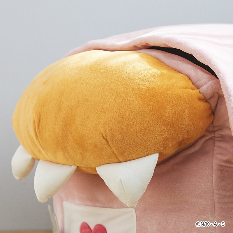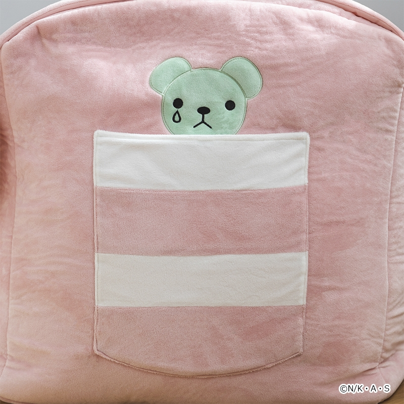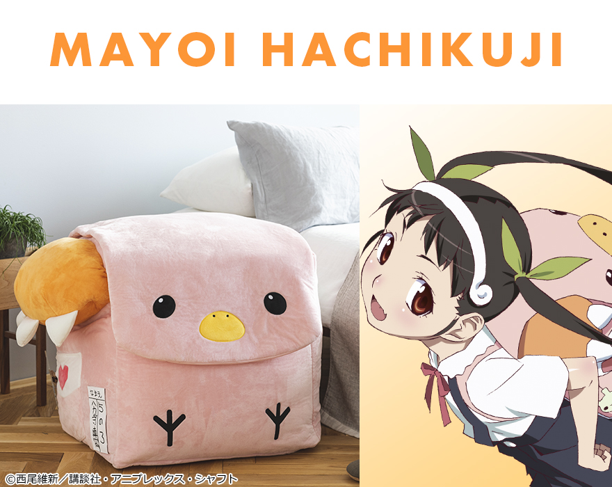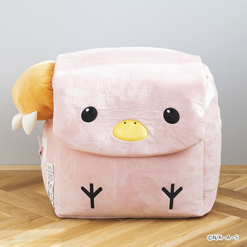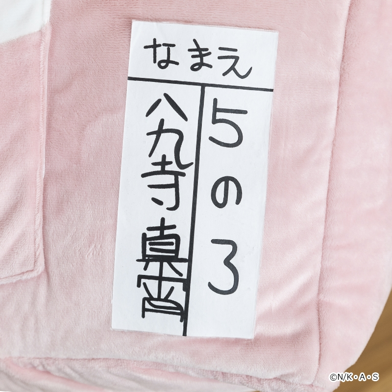 這款有誠意許多 ( ? ) 將八九寺所背的背包立體還原,製作成收納袋的樣式,可以看到包含包包上的各種裝飾都有配置上去,連娃娃的手手都有做出來,更有八九寺的名牌,大小寬約50cm×高約55cm×厚約50cm 。