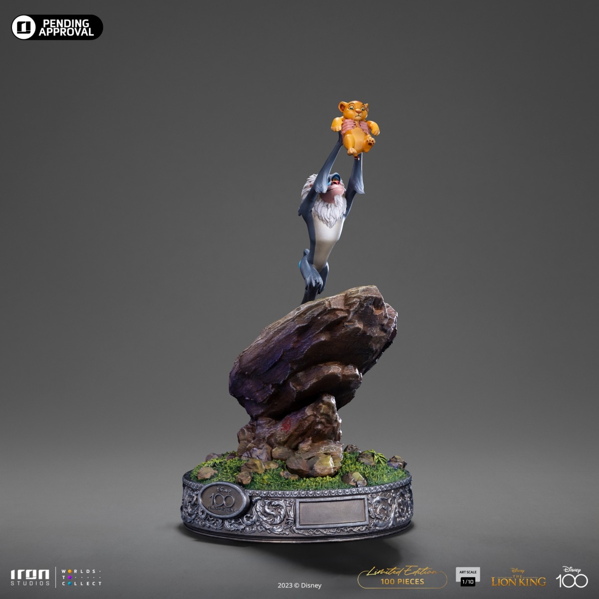 本作是以《獅子王》最經典的開場序幕為題設計,打造出山魈「拉飛奇」高高舉起未來獅子王「辛巴」的場面,且因應了迪士尼一百週年設計出多種規格;最基礎的版本是單單只有拉飛奇舉起辛巴,岩石的體積也比較小,接著是製作出迪士尼100 標誌底座的版本,還在場景中注入了綠綠的草地,最後是超豪華的樣式,多了獅王「木法沙」、皇后「沙拉碧」跟黃嘴犀鳥「沙祖」,山壁的岩石也變得極具存在感,除此之外,草地上還長出了大樹,底座更呈現出豐富的雕刻圖紋,真的是牙一咬、直接購入豪華版本的!太讚了。