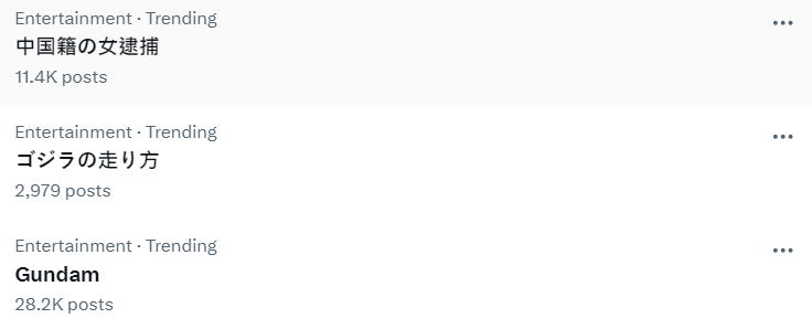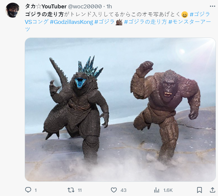 ▼ 日本 X 趨勢出現的「哥吉拉的走路方式」( ゴジラの走り方 )