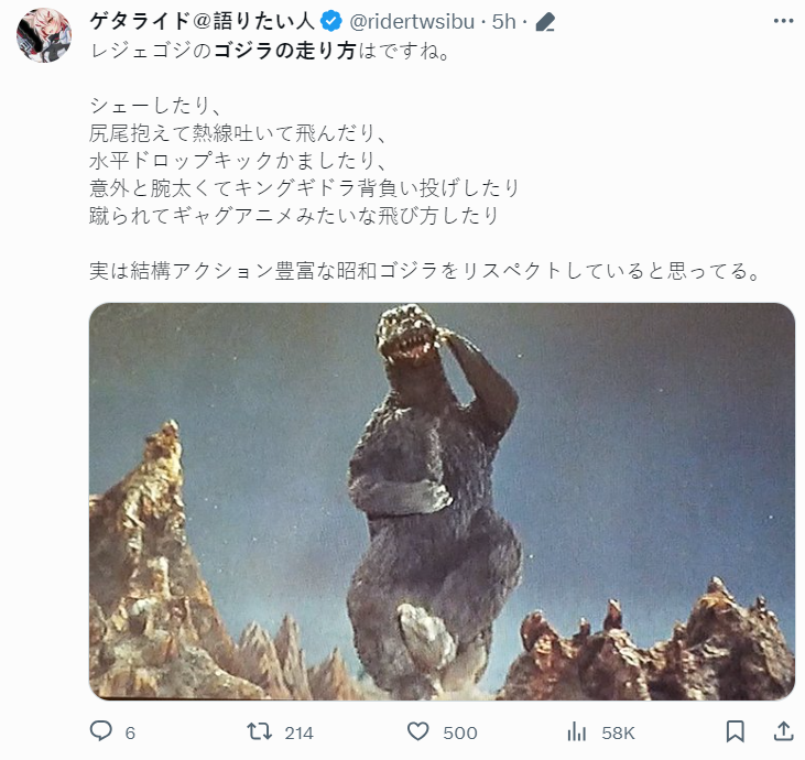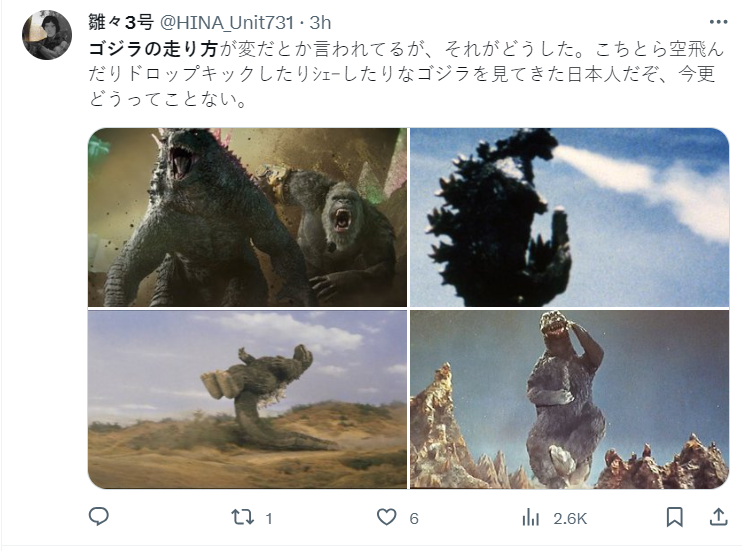 因為哥吉拉的這個跑步動作,讓不少粉絲困惑以前的哥佬是會這樣奔跑的嗎 ? 立刻有網友翻出古早的昭和時代的哥佬跑步畫面,可說是比傳奇哥還要靈活神速的呢 www。