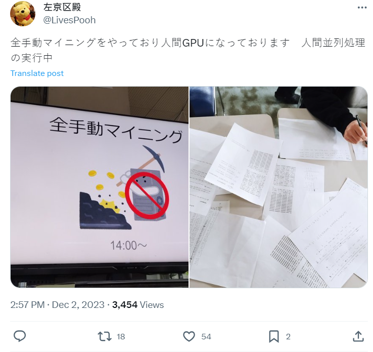 最近日本 X 上出現一個趣味話題,在京都大學的學生宿舍中,居然出現一個活動叫做「全手動挖礦」( 全手動マイニング ) ,聚集對此有興趣的朋友,一起在學生活動休息區一起挖礦,全程僅能使用人力,也引起網友熱議。