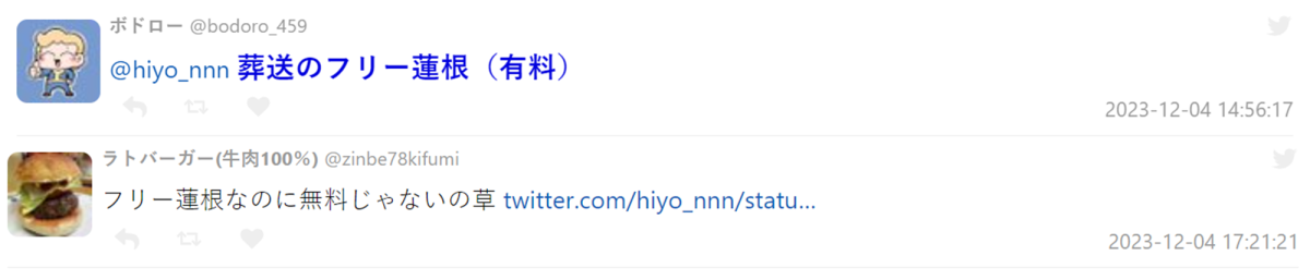 又因為「葬送のフリー蓮根」中的フリー等同英文的 Free ( 免費 ) 之意,網友戲稱這還是要錢的阿,可不是真的免費 www。
