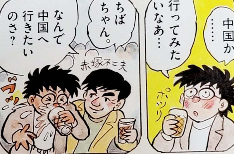 赤塚偷偷告訴千葉,他也是來自中國 Image credit:ちばてつやのブログ『ぐずてつ日記』