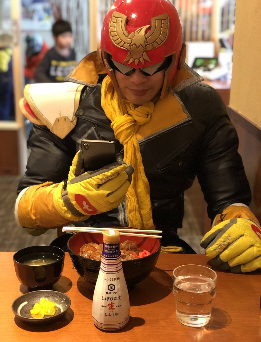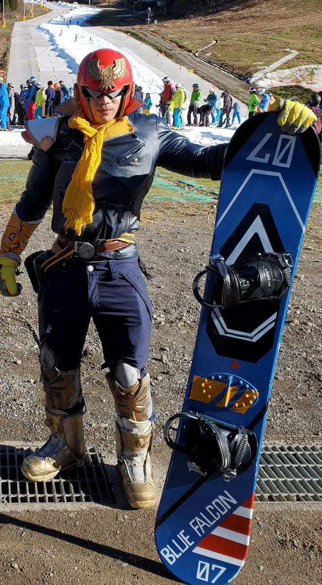 熱愛滑雪的他,近期也展現自己製作服裝的長才,這次選擇遊戲《F-Zero》與《任天堂明星大亂鬥》的飛隼隊長(Captain Falcon)去滑雪,不僅引起現場民眾驚呼連連,分享到 X 上後還原度也備受肯定。