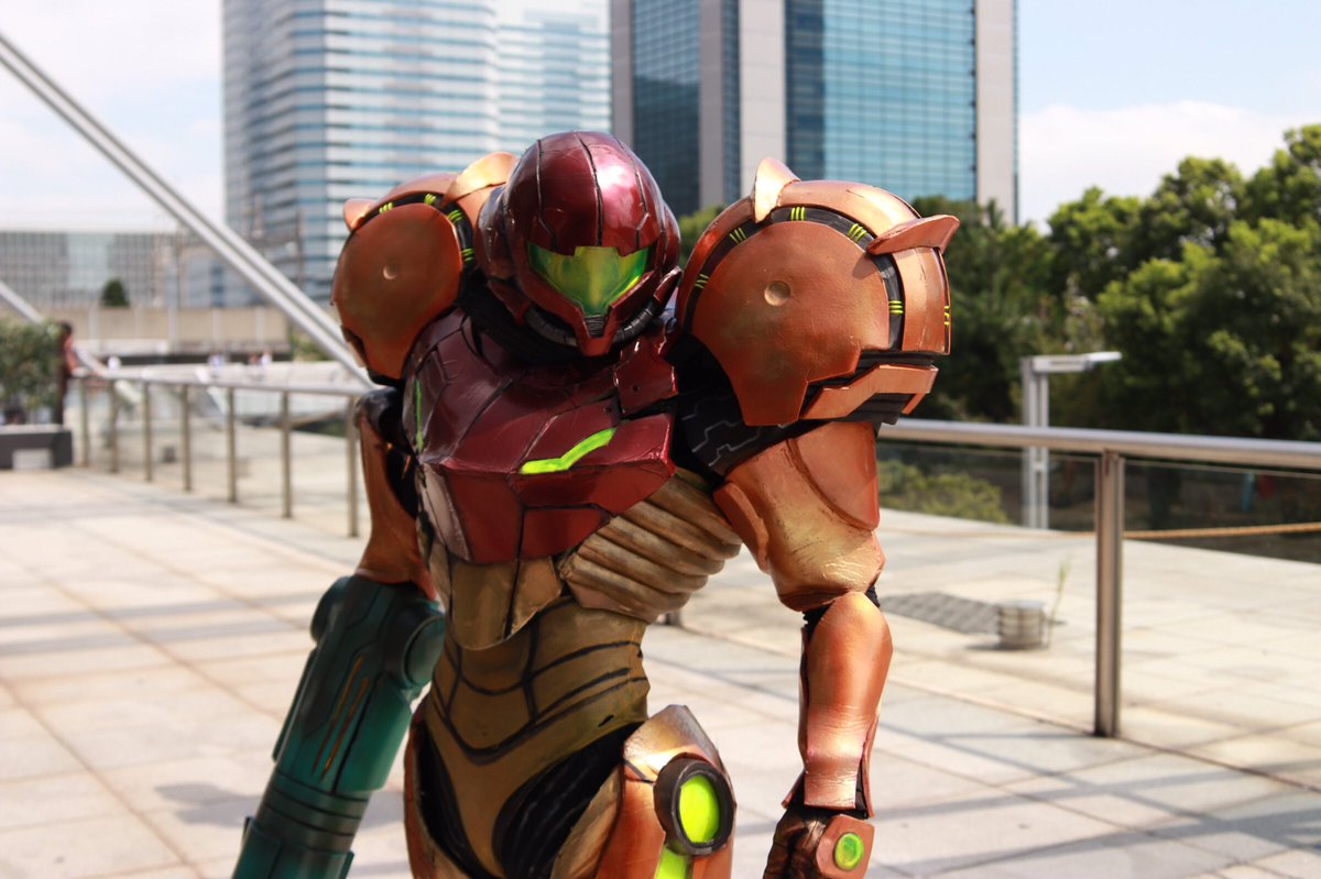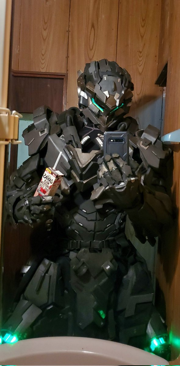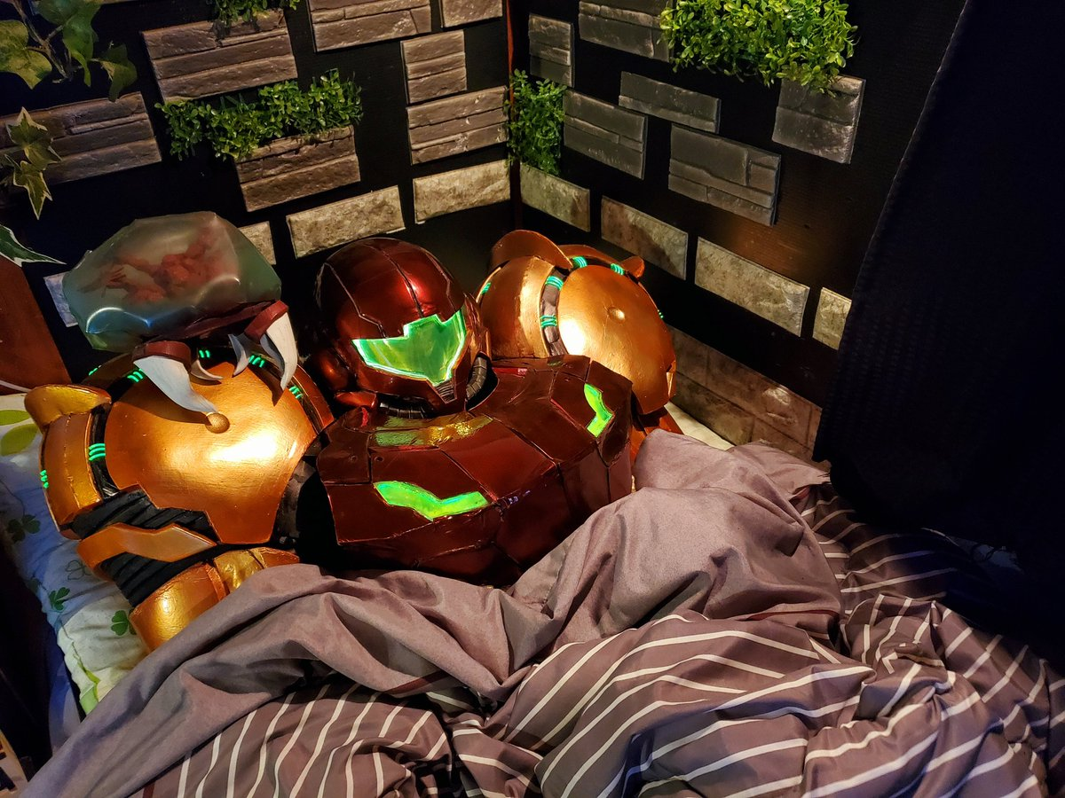 除此之外,他還有製作了《銀河戰士》薩姆斯‧亞蘭的裝甲服飾,這發光的模樣...真的是機甲服製作高手。