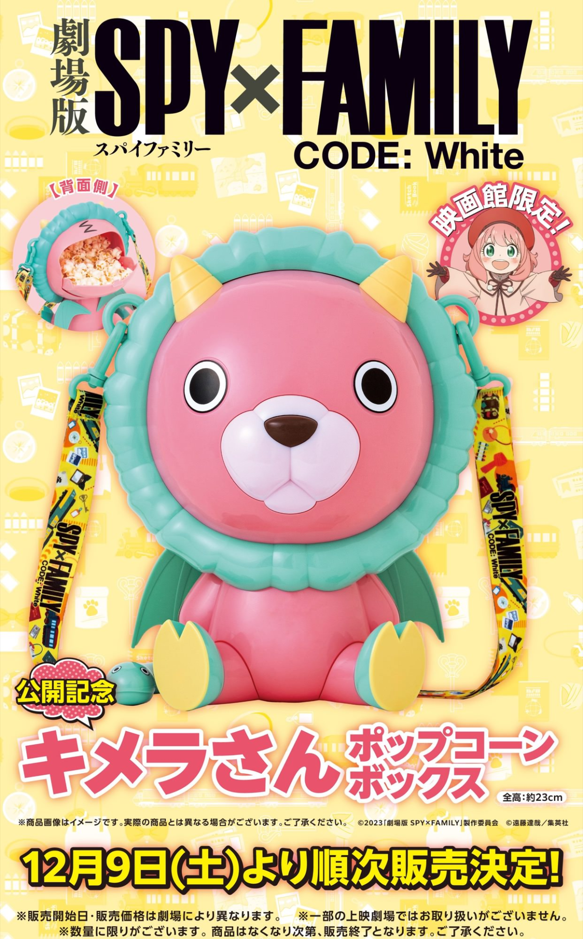 為了慶祝即將登陸戲院,官方近日釋出周邊「奇美拉娃娃爆米花桶」,以戲院周邊的形式限定販售,將於 12 月 9 日起起於日本各地戲院限量開賣。