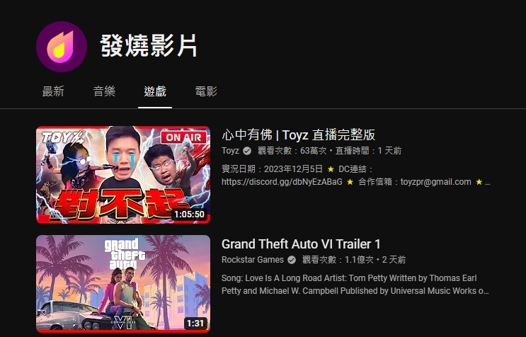 於2023年12月5日上午驚喜釋出的《俠盜獵車手》(Grand Theft Auto)系列最新力作《俠盜獵車手6》(Grand Theft Auto VI)首支電玩預告影片,不僅在短短時間內就突破1.1億次的觀看次數,更在首發後的24小時內獲得890萬個讚。這不只是意味著該作成為電玩史上最受歡迎的預告影片,更是打破了前所未有的紀錄,榮獲「金氏世界紀錄」的三項認證。