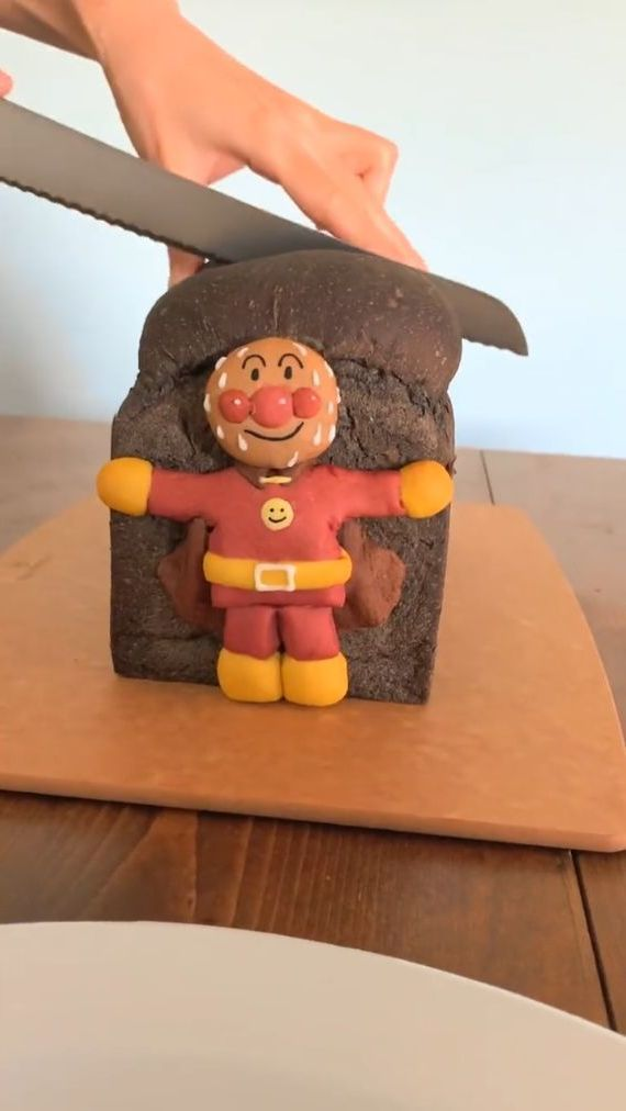身為麵包藝術家且是麵包烘培教室「konel」主導人的Ran(@konel_bread)製作了一條以麵包超人為主題的好吃吐司,要說外觀唯一和麵包超人沾上邊的那就是靠在吐司上神情十分緊張的麵包超人。