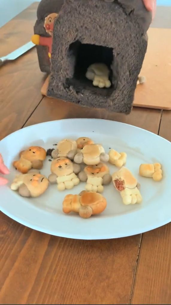 ▼嗯?怎麼麵包超人有點緊張,吐司裡有東西?