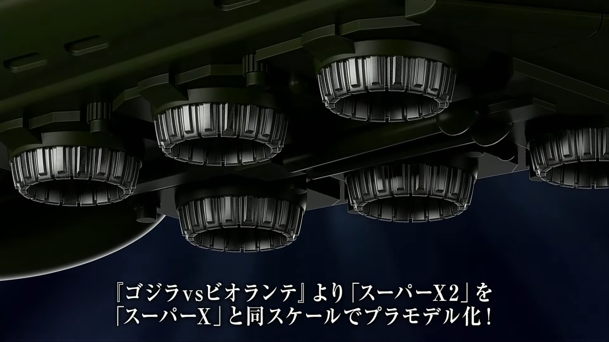 登場於 1984 年電影《哥吉拉》的對哥吉拉兵器「Super X」以組裝模型規格商品化,具備上部隱蔽式砲塔的展開機構,以及主砲、榴彈砲的砲管伸縮機構,底部推進扇葉零件可動,300mm特殊彈加農砲的砲台也能展開、左右迴旋。機體前方搭載的探照燈可展開外蓋。