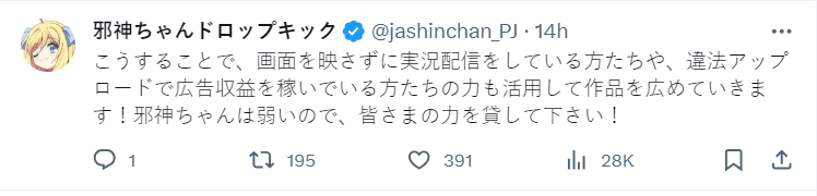 各位或許會好奇為何官方要這樣做,官方解釋希望藉此讓作品能更廣泛的傳遞給觀眾,散播的更遠讓大家更容易認識。由於小邪神太弱了,希望借助大家的力量來幫忙。