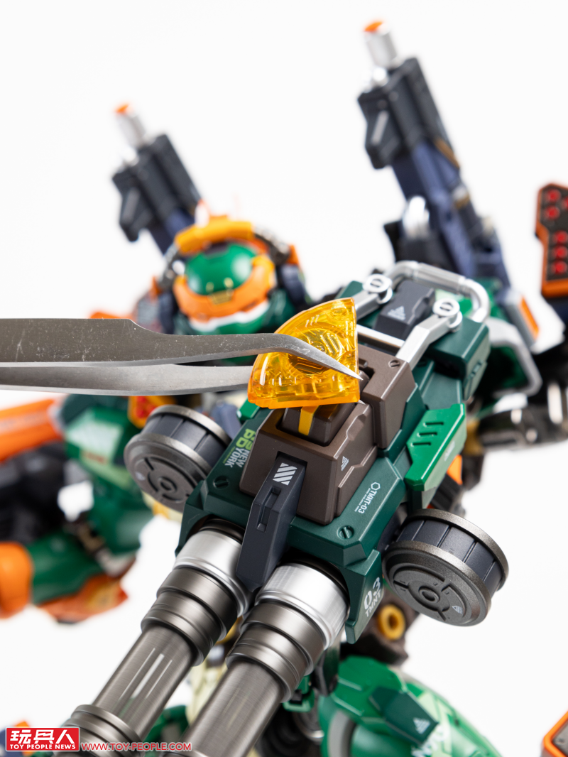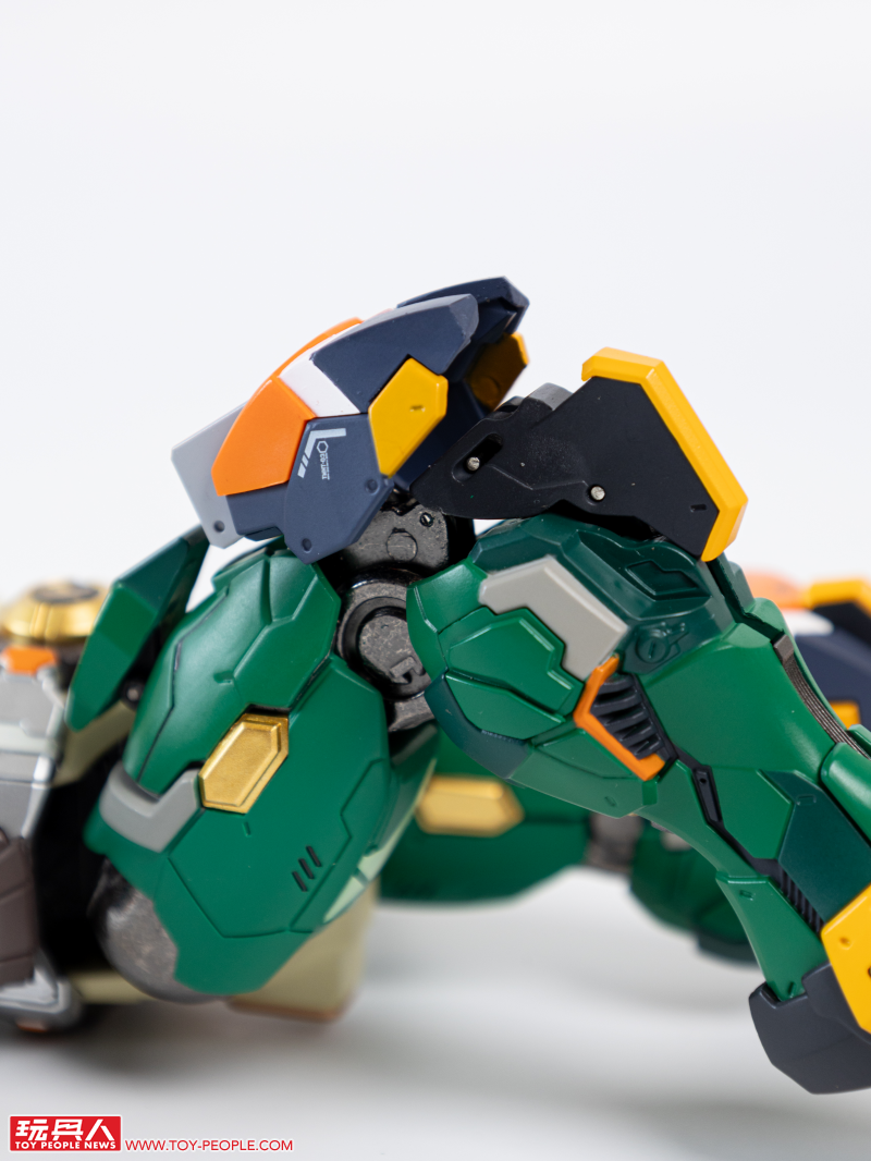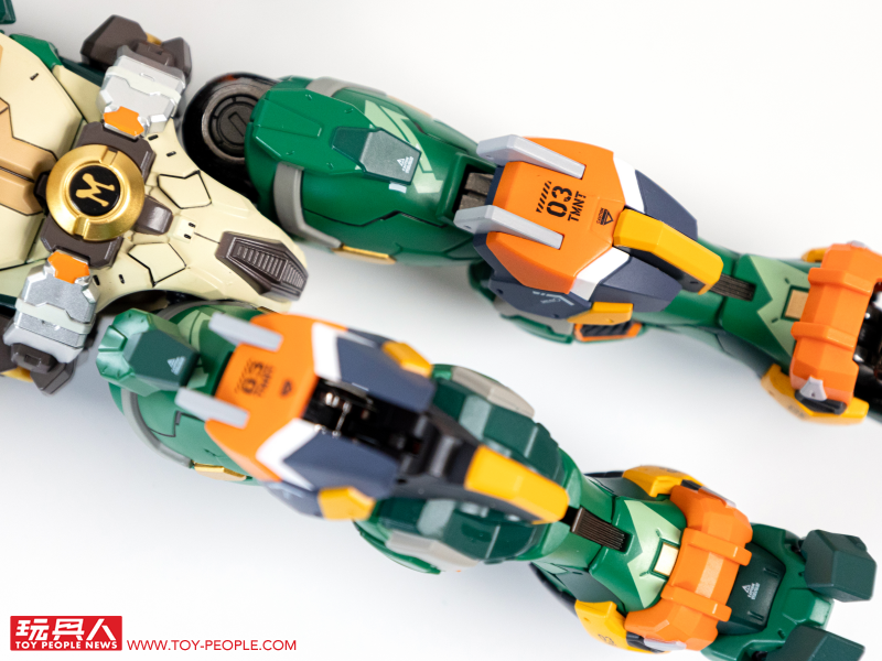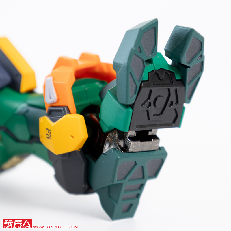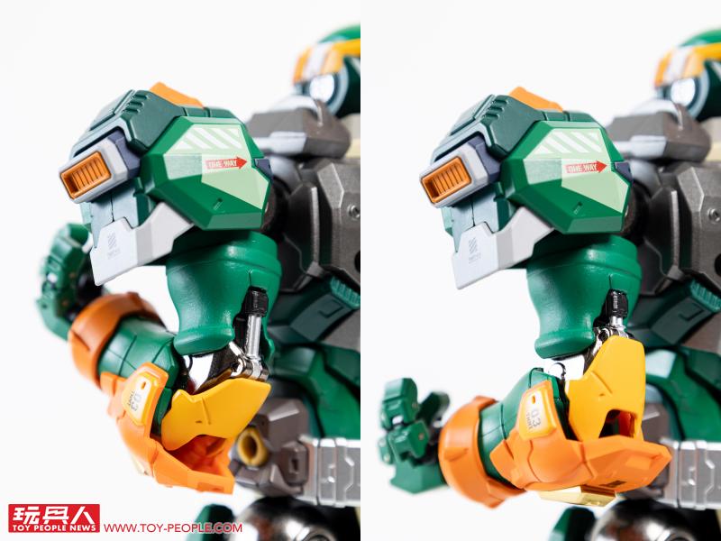 ▼ 橘綠搭配的手臂除了有著深淺不一的色彩表現外,位於手肘的金色裝甲也可以拆下來,後面我們會再提到。