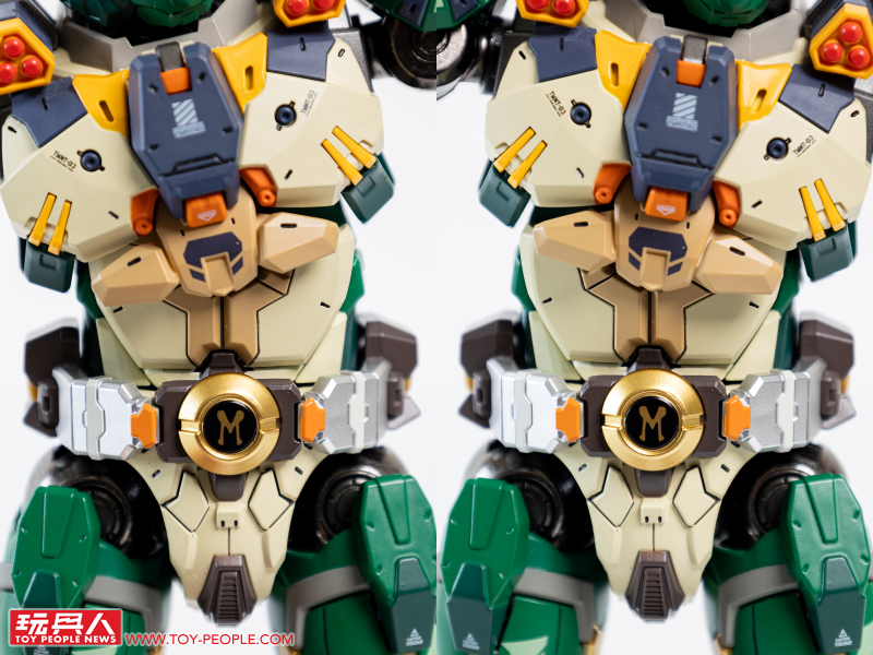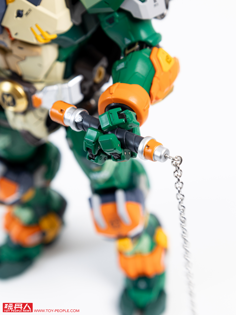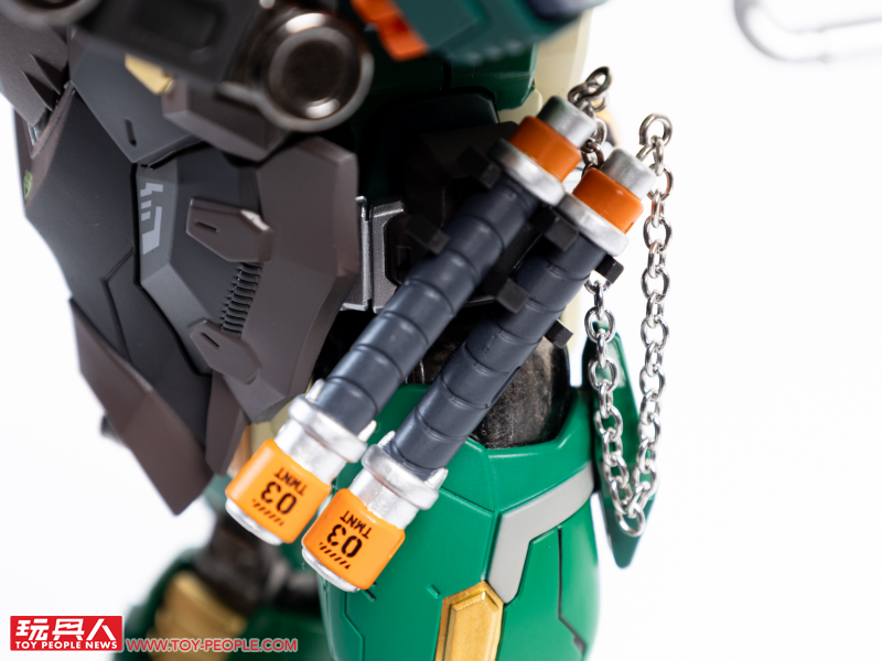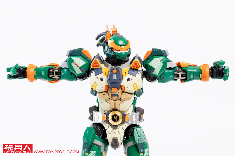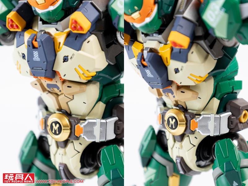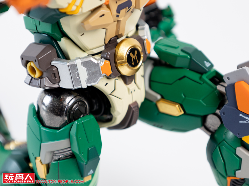▼ 橘綠搭配的手臂除了有著深淺不一的色彩表現外,位於手肘的金色裝甲也可以拆下來,後面我們會再提到。