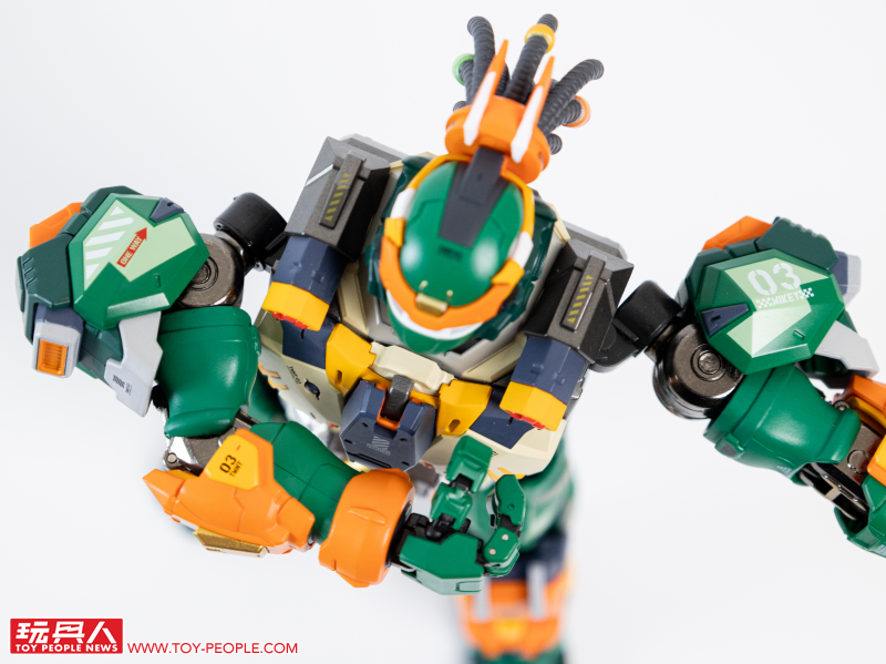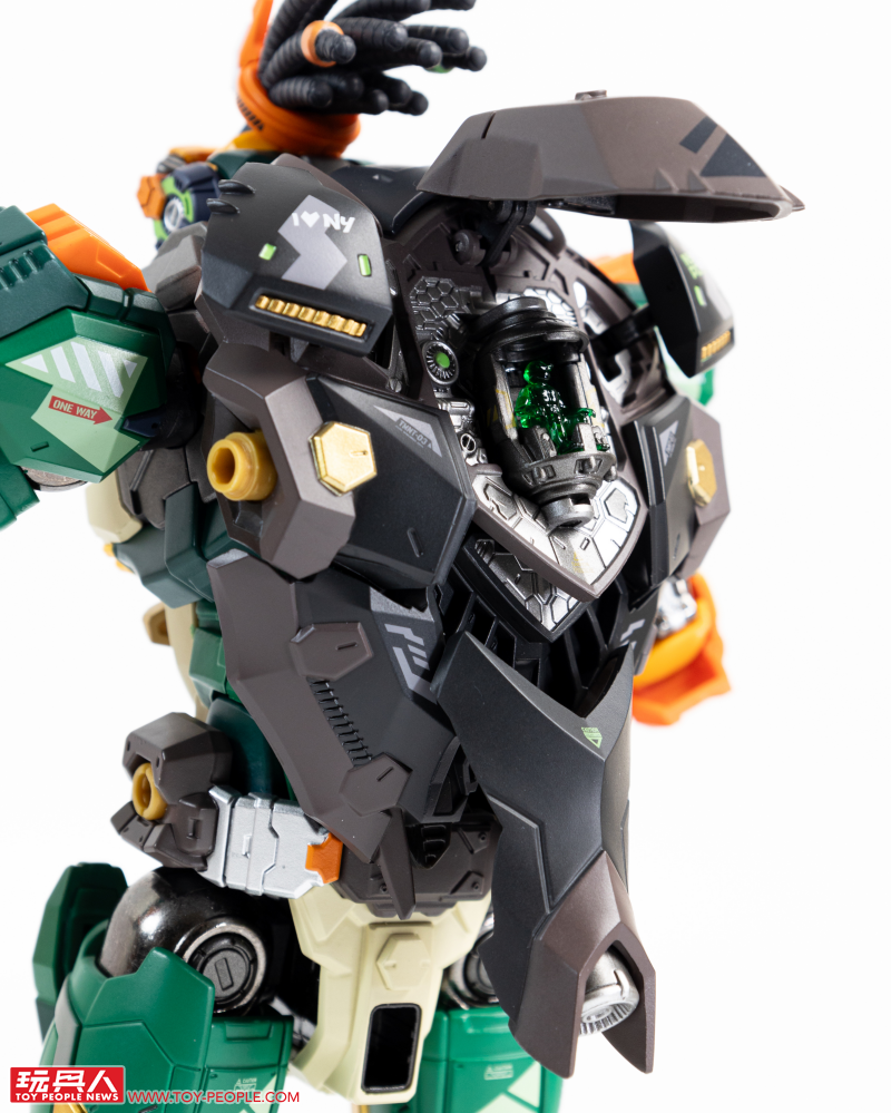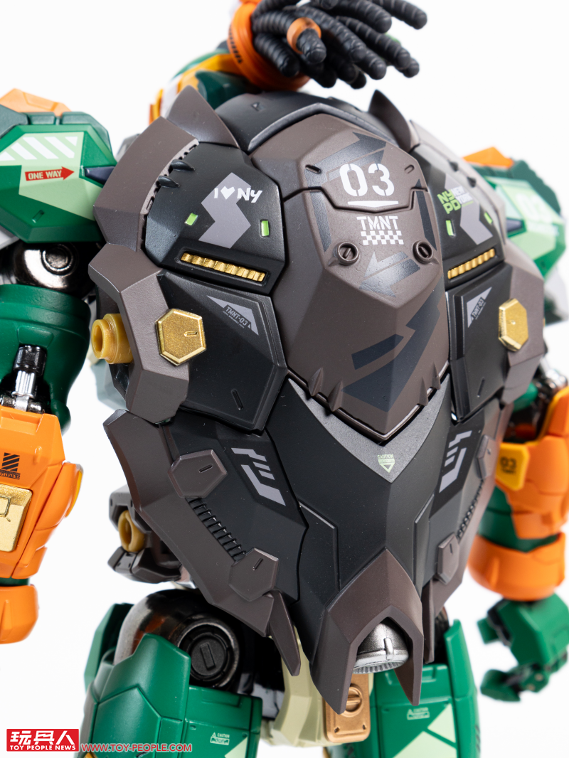 ▼ 頭部融入了黑人頭的辮子元素,且同時保持了機甲忍者龜的天線細節,嘴巴還可以打開增添表情的變化性。
