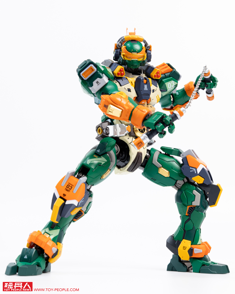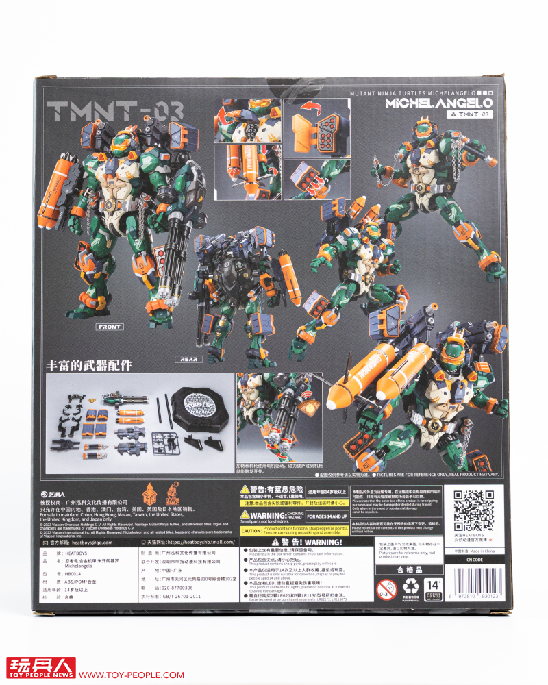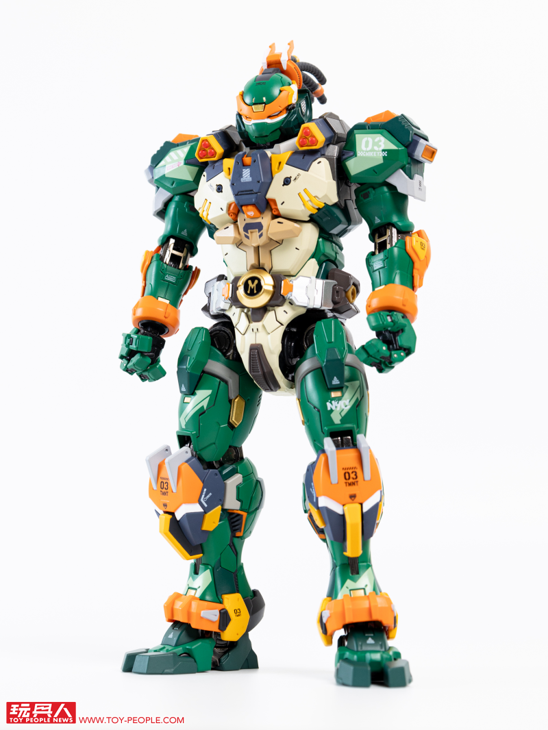四隻各有特色、生活在地下水道的忍者烏龜,駕駛著代表自己的巨大機器人登場戰鬥沒想到還真有搞頭!?由響指動漫、HEATBOYS火仔動漫、台灣插畫家「草神」攜手,經 Nickelodeon 正版授權的《忍者龜》主題合金可動模型-機甲忍者龜,在大哥「李奧納多」之後,我們玩具人編輯部這次要再度與你各位一起來玩玩看下一款商品「TMNT-03 米開朗基羅」!